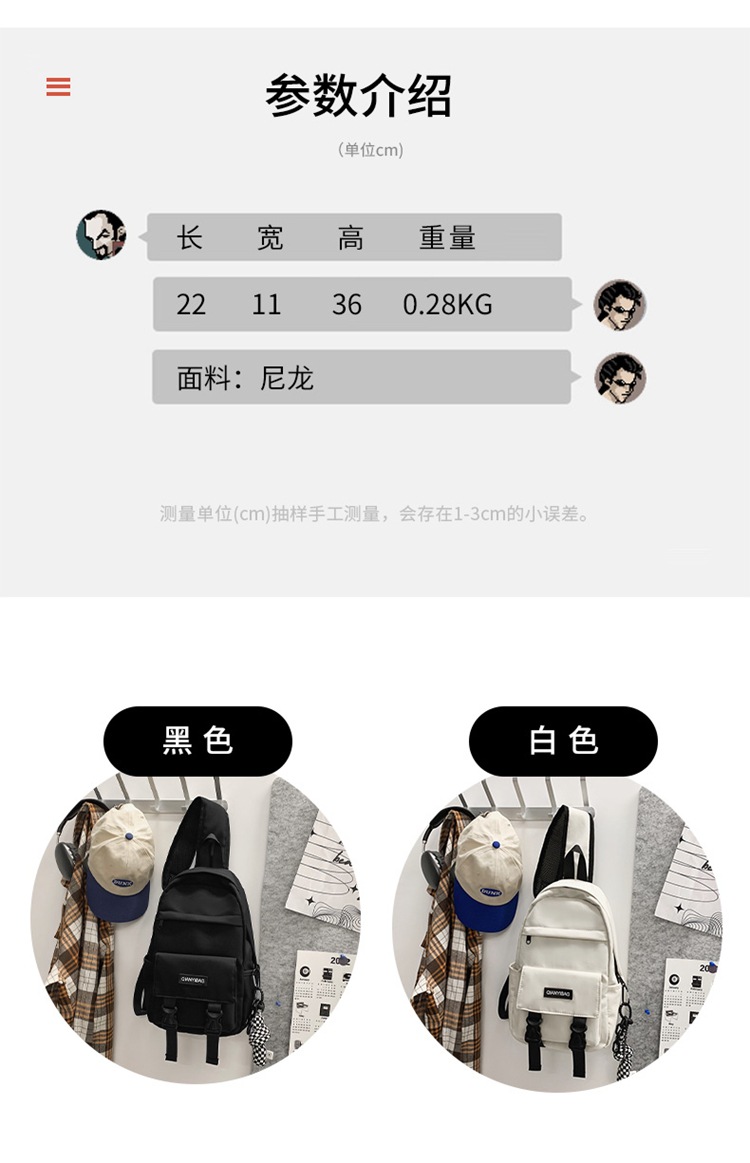 대용량 가슴 가방 새로운 패션 커플 캐주얼 배낭 도매 트렌디 한 멋진 거리 여행 메신저 가방 한국판스토어 가기