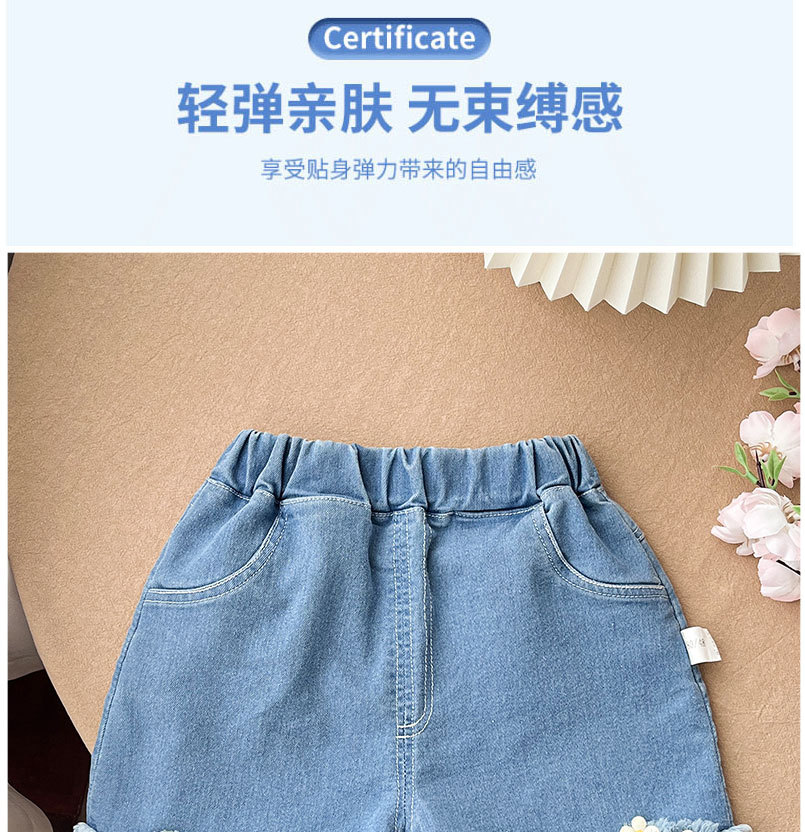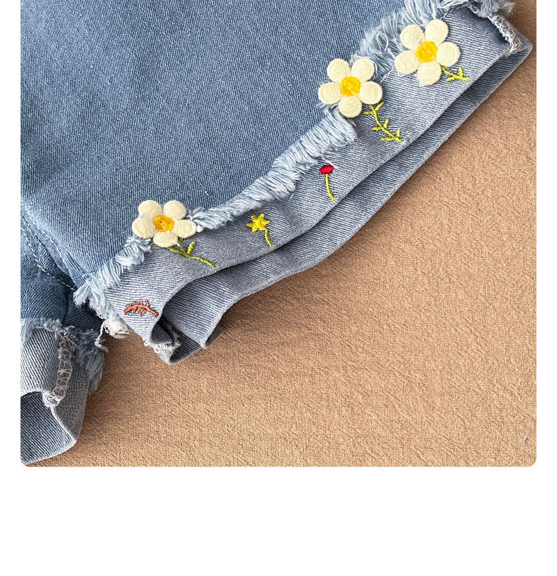 여름 새 어린이 한국식 꽃 수놓은 느슨한 여성 올매치 외신 얇은 데님 반바지