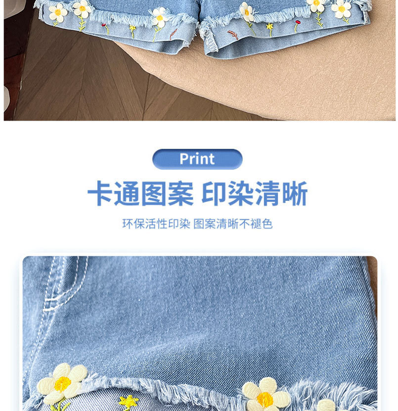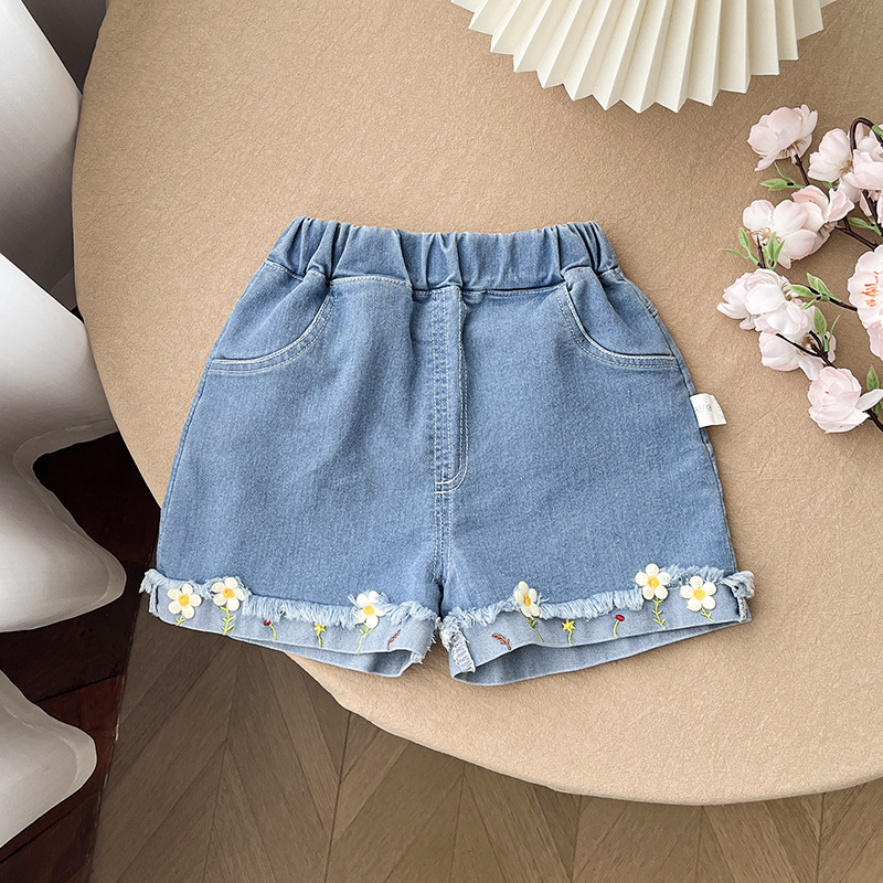 여름 새 어린이 한국식 꽃 수놓은 느슨한 여성 올매치 외신 얇은 데님 반바지스토어 가기