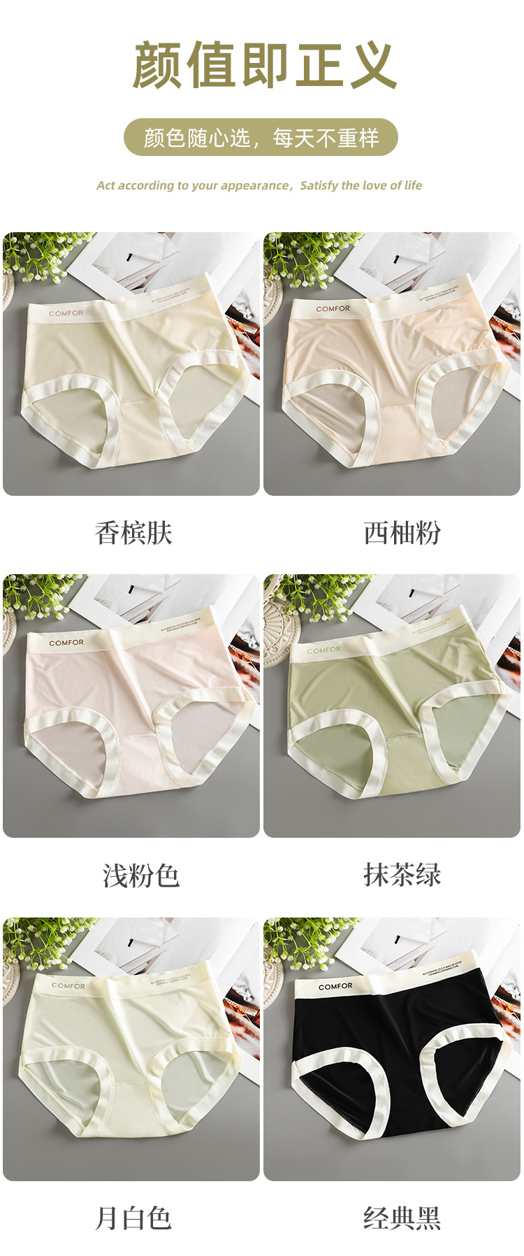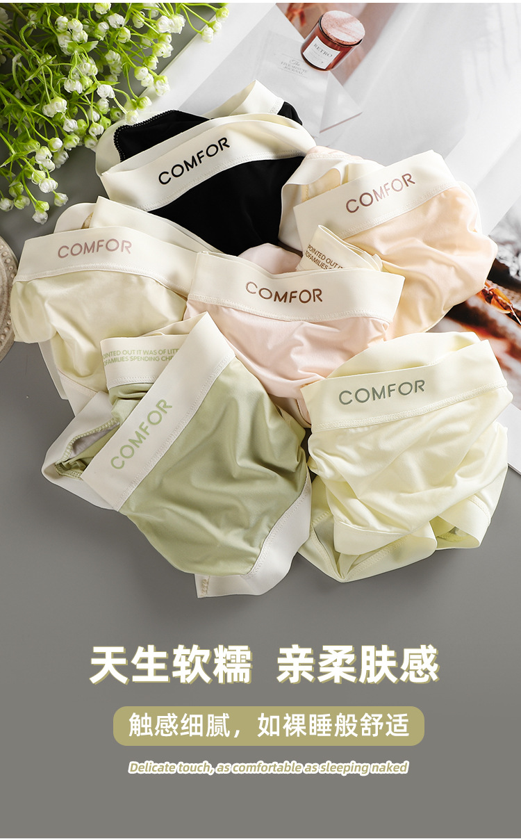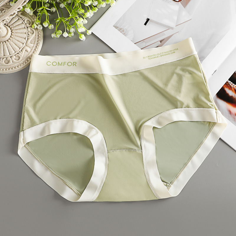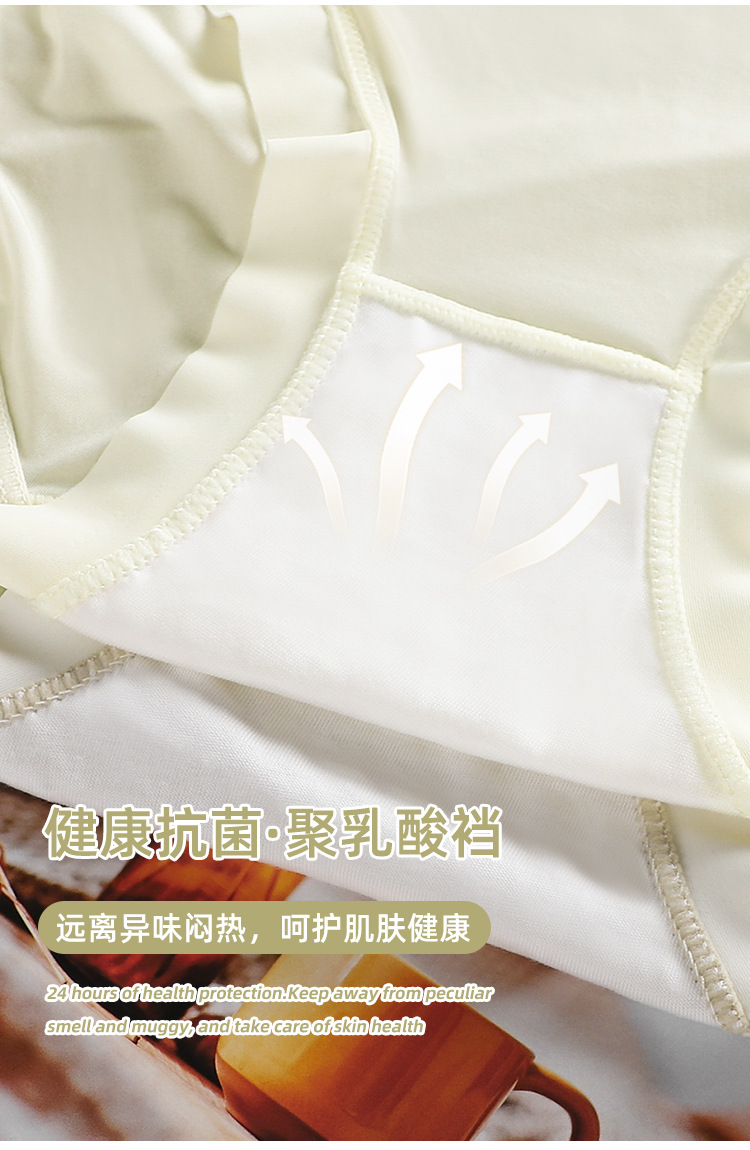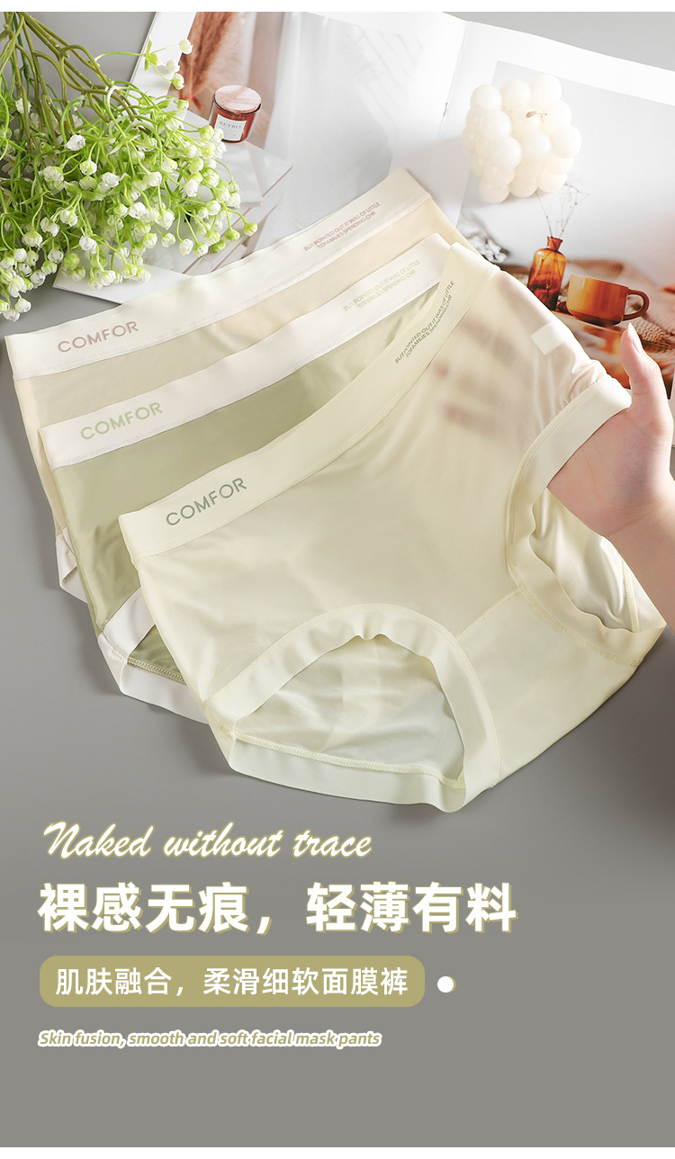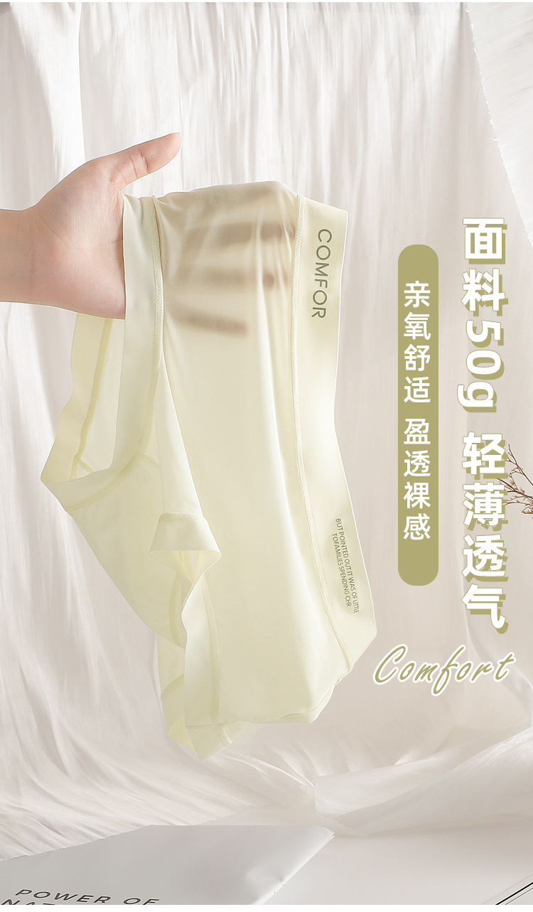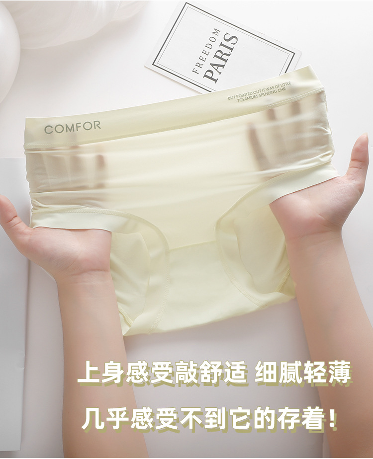 여름 얇은 트레이스 마스크 벌거 벗은 느낌 여성의 중간 허리 아이스 실크 속옷 폴리 락트산 항균 크로트 소녀 브리프