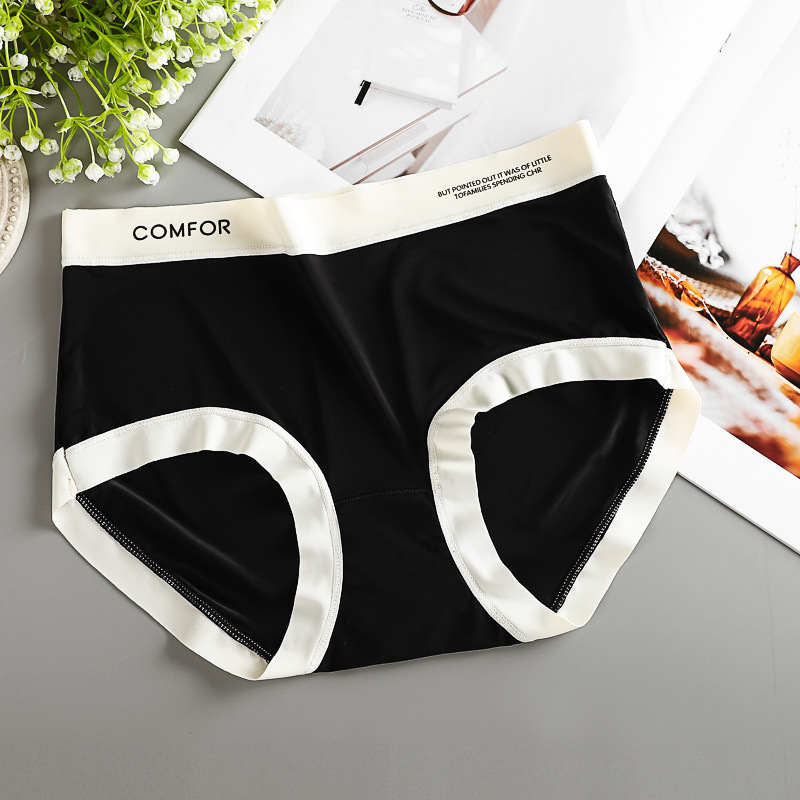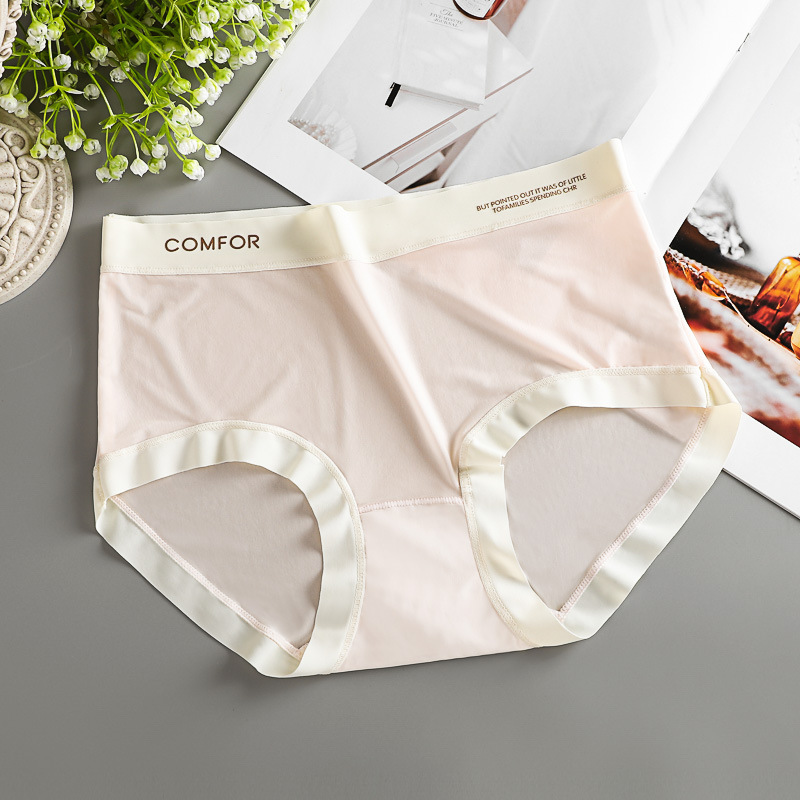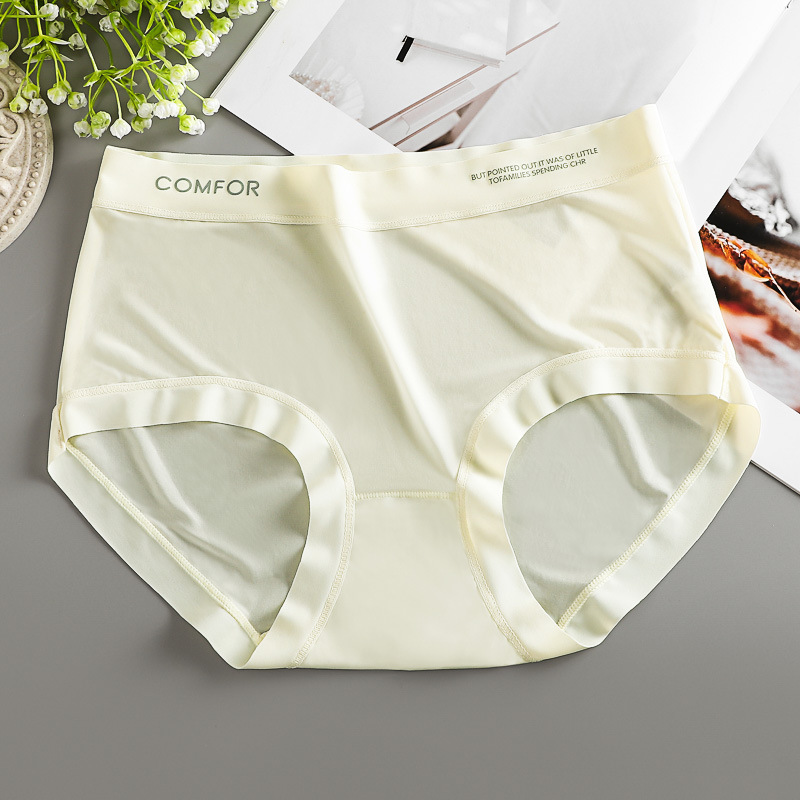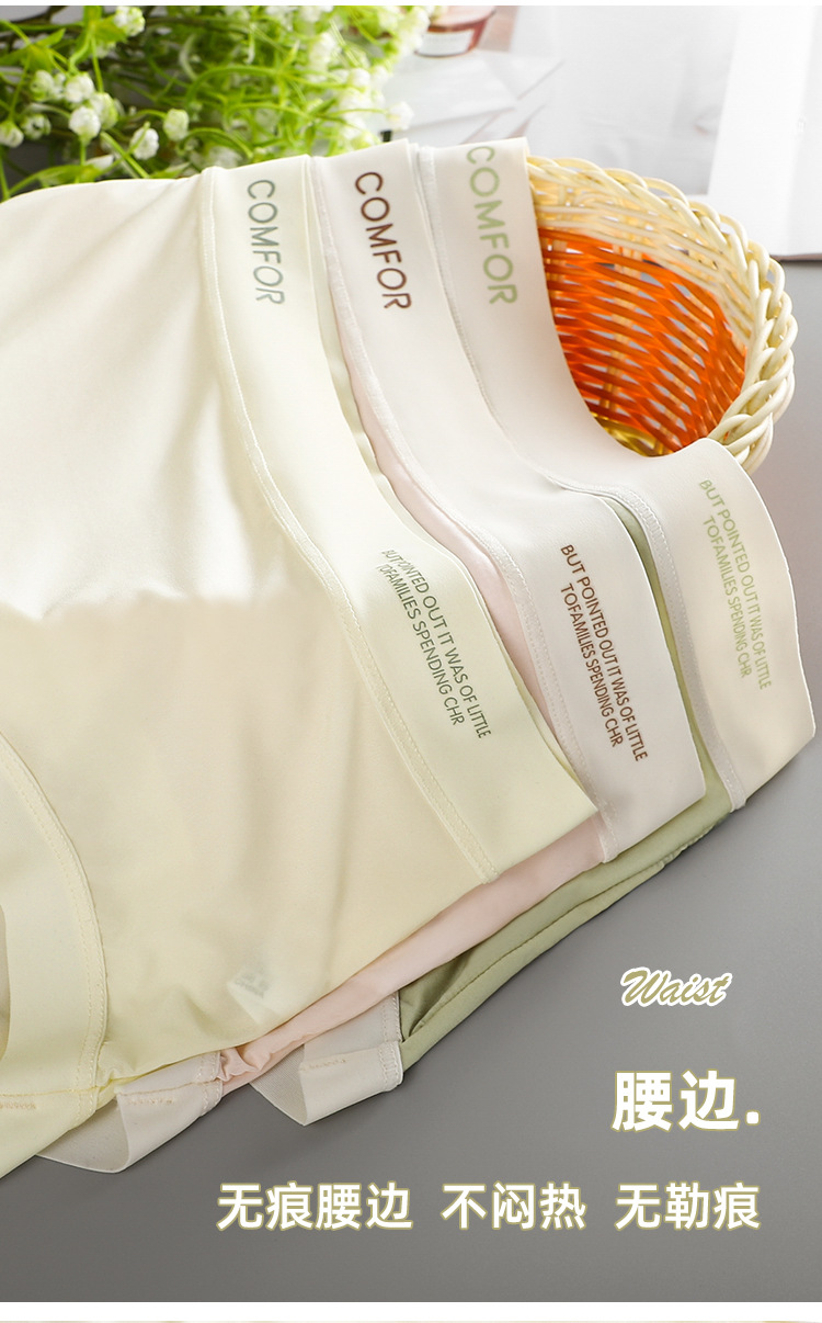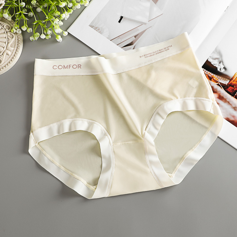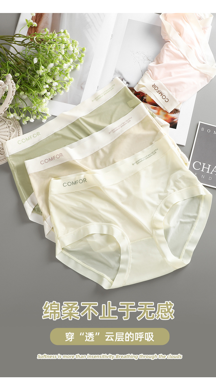 여름 얇은 트레이스 마스크 벌거 벗은 느낌 여성의 중간 허리 아이스 실크 속옷 폴리 락트산 항균 크로트 소녀 브리프스토어 가기