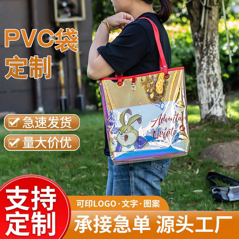 다채로운 투명 PVC 인터넷 유명 레이저 가방 로고 패턴 방수 핸드백 대용량 젤리 선물 가방