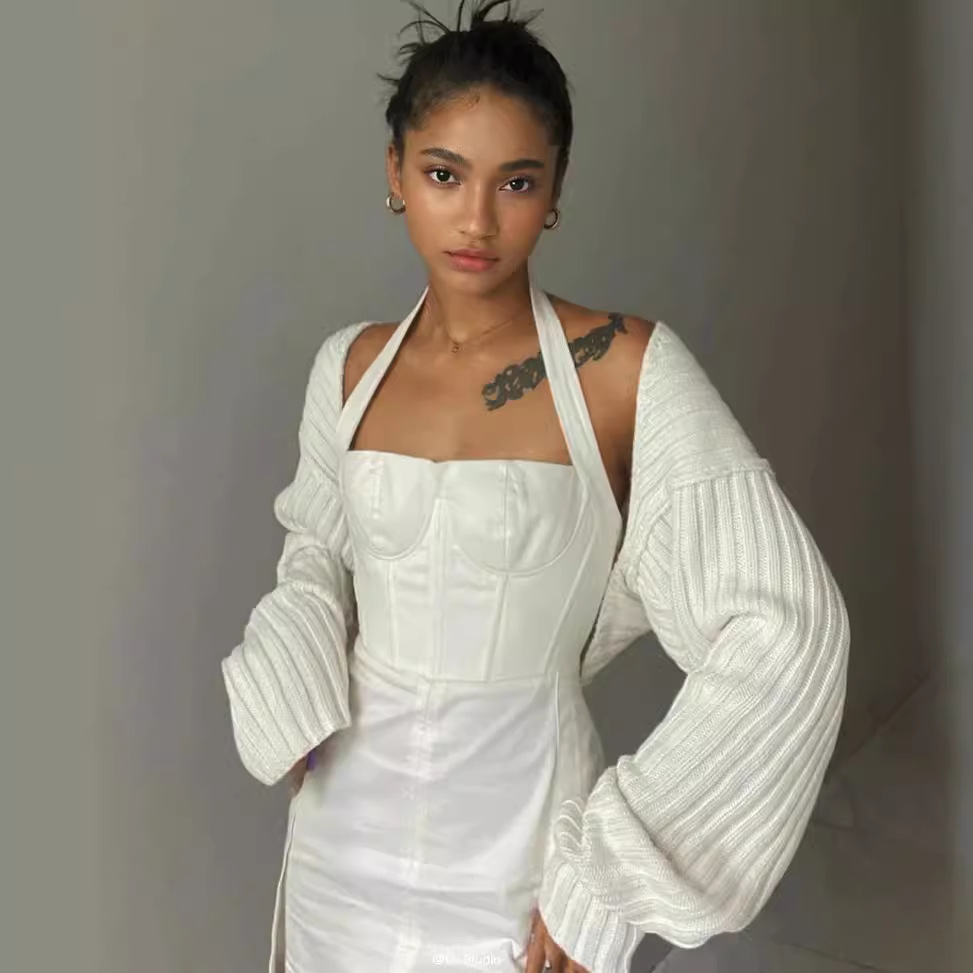 유럽과 미국의 아마존 대외 무역 여성 블로거 가을 및 겨울 새로운 니트 스웨터 루스 캣 슬리브 니트 숄 탑