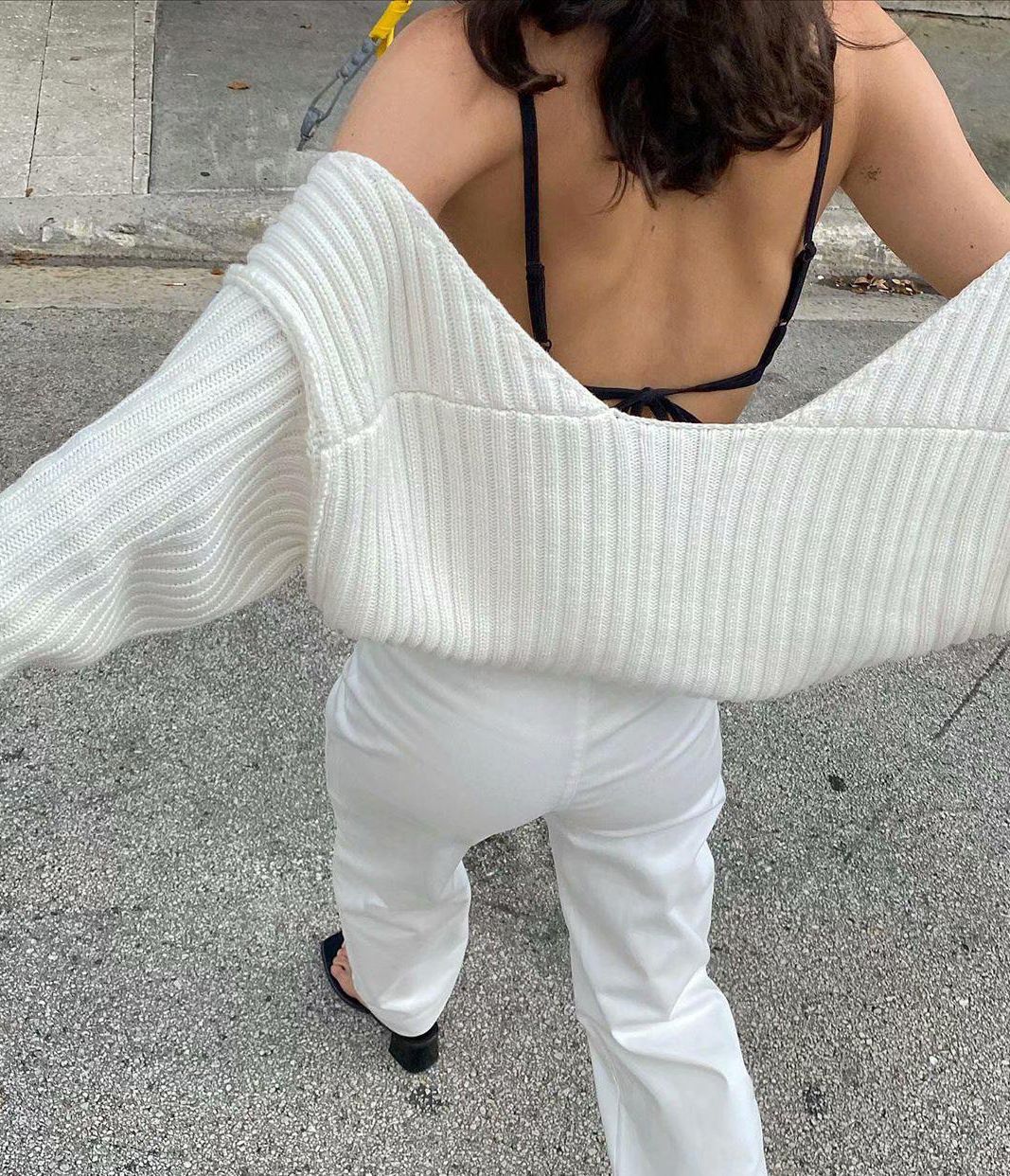 유럽과 미국의 아마존 대외 무역 여성 블로거 가을 및 겨울 새로운 니트 스웨터 루스 캣 슬리브 니트 숄 탑스토어 가기