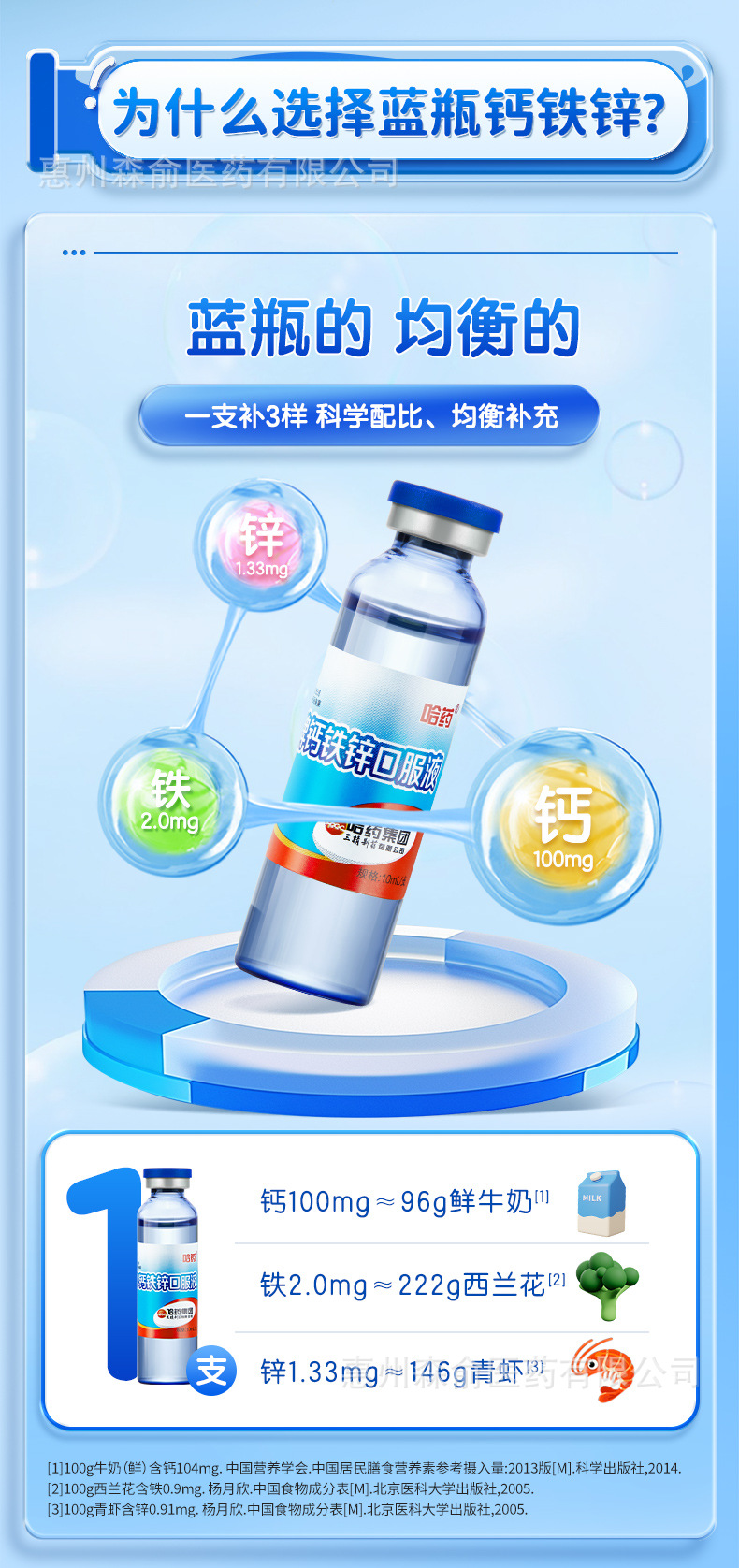 하얼빈 의학 브랜드 칼슘 철 아연 구강 액체 어린이 액체 칼슘 세 에센스 작은 파란색 병 칼슘 아연 글루코 네이트 구강 용액스토어 가기