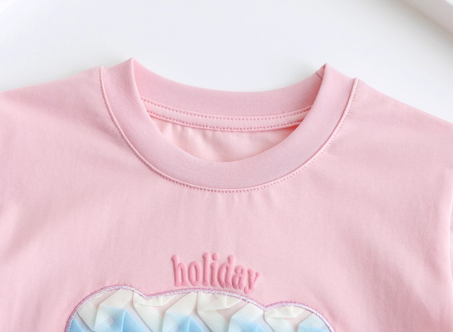 여자 반팔 2025 여름 새로운 만화 입체 곰 어린 소녀 유행 달콤한 여름 티셔츠 바닥 셔츠 3스토어 가기