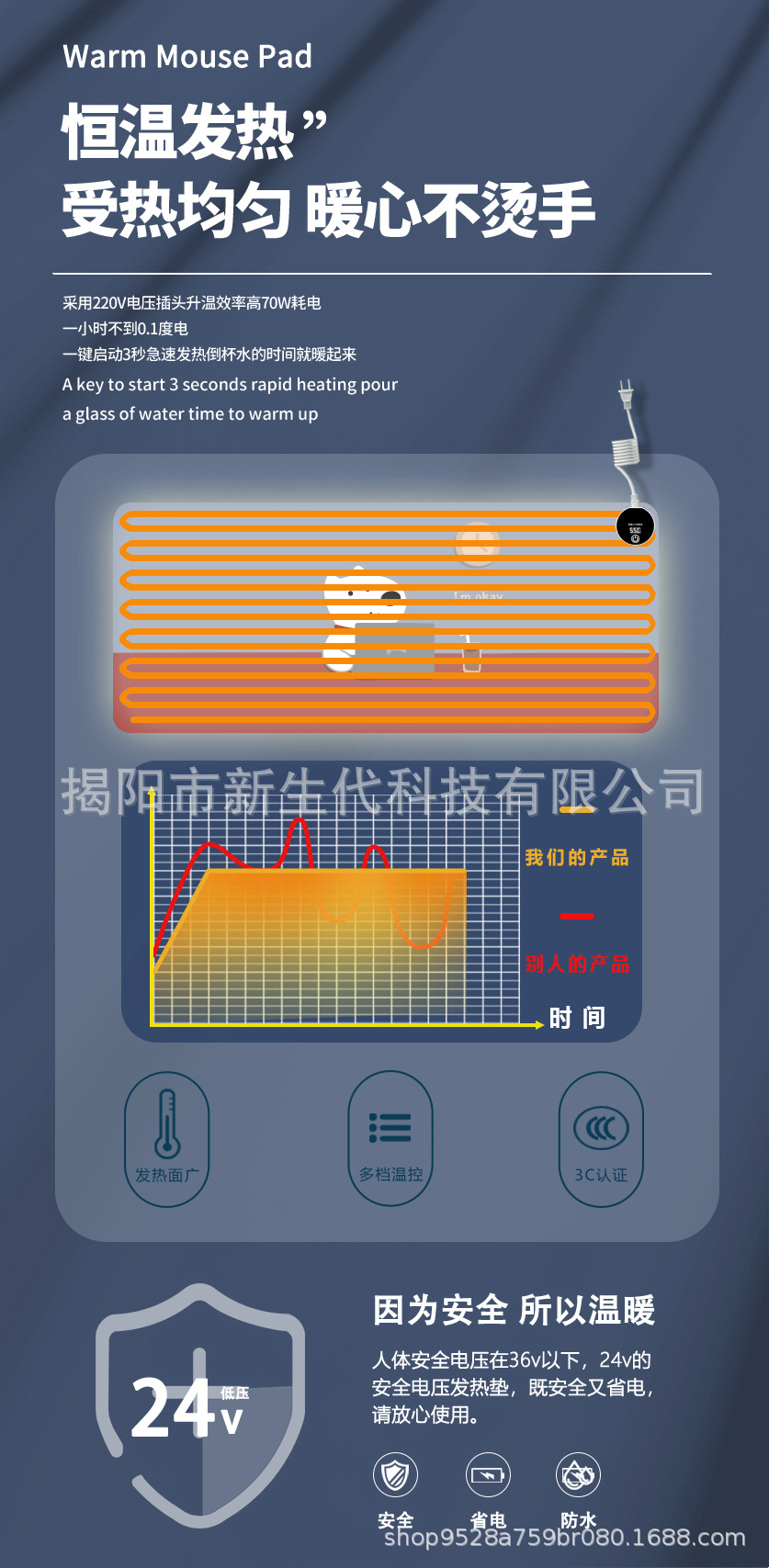 난방 마우스 패드 큰 만화 난방 따뜻한 테이블 패드 사무실 컴퓨터 데스크톱 난방 패드 숙제 따뜻한 패드