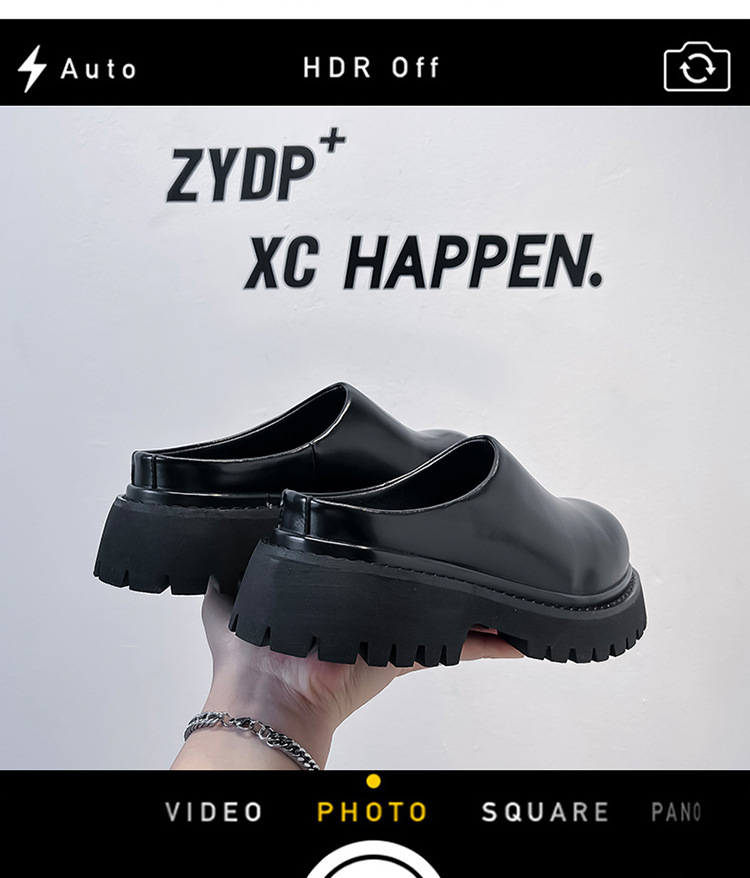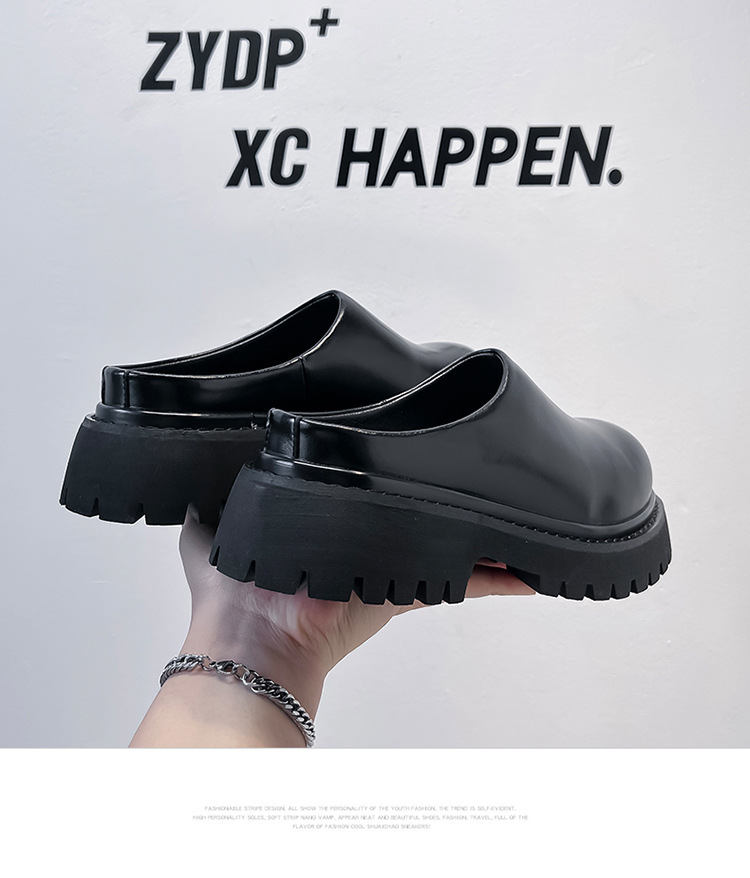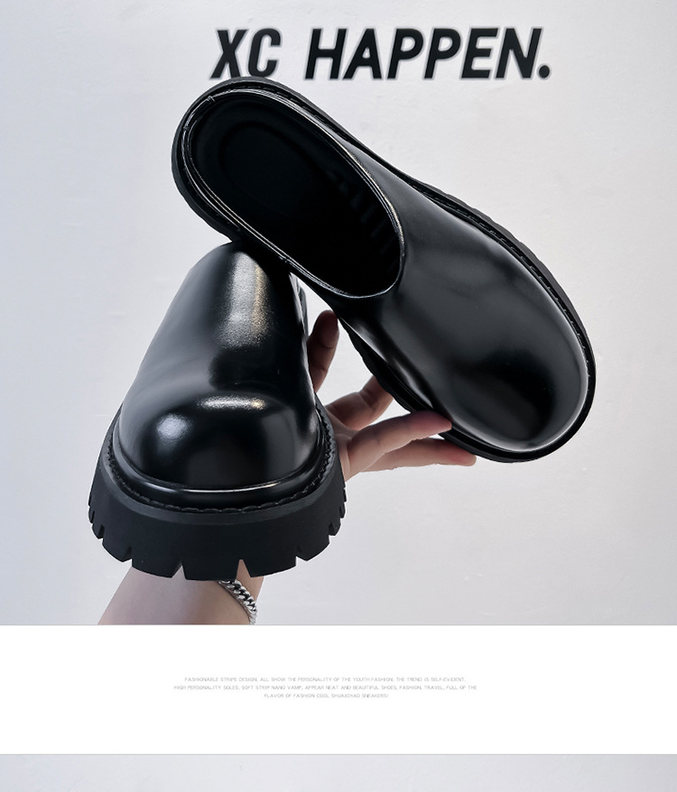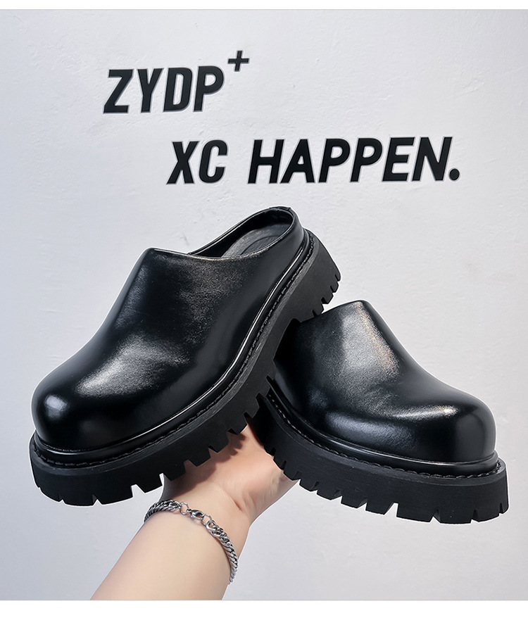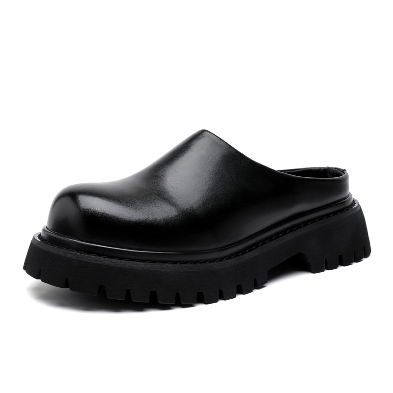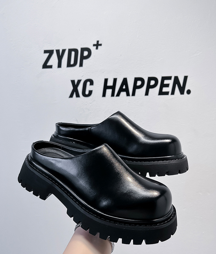 2024 두꺼운 바닥 Baotou 슬리퍼 남성용 높이 증가 핸섬 플랫폼 하단 캐주얼 패션 하프 슈 샌들 통기성 가죽 신발