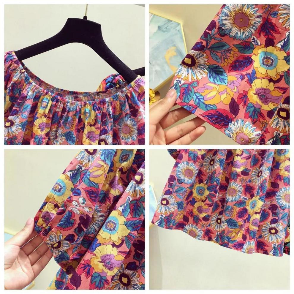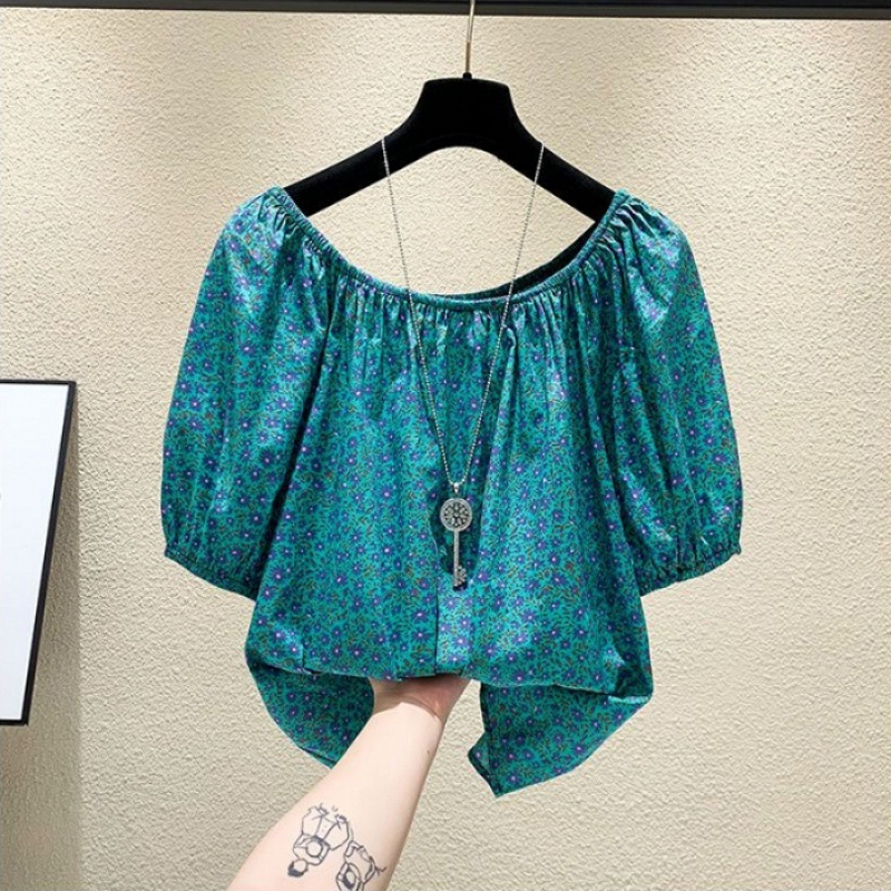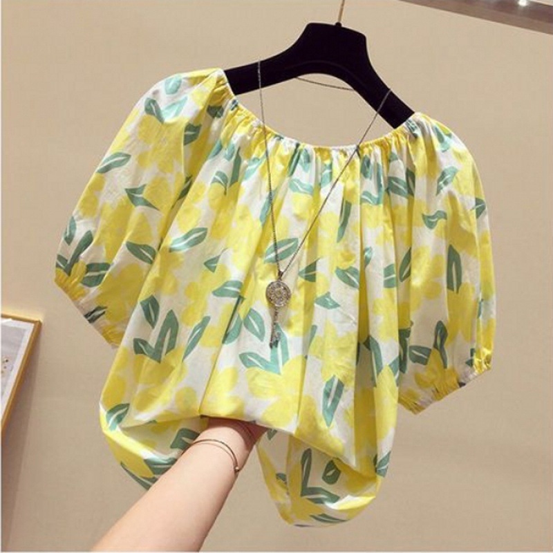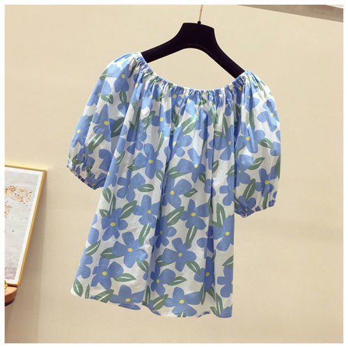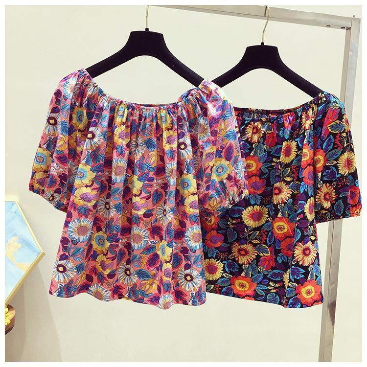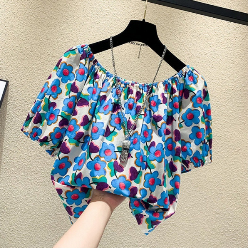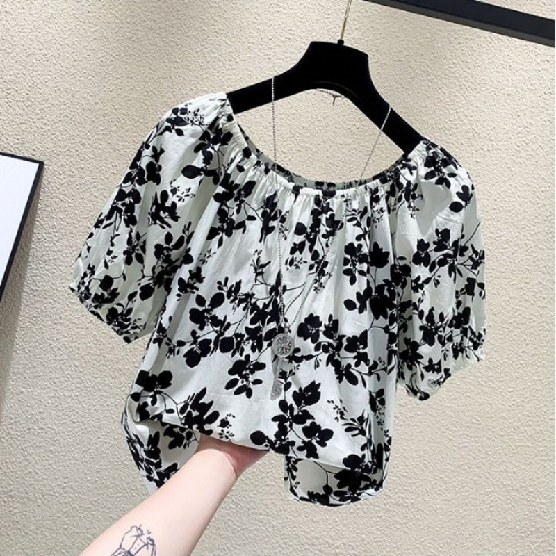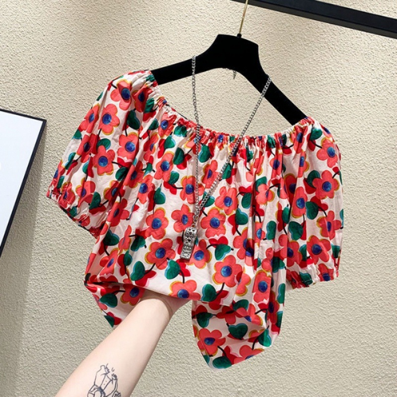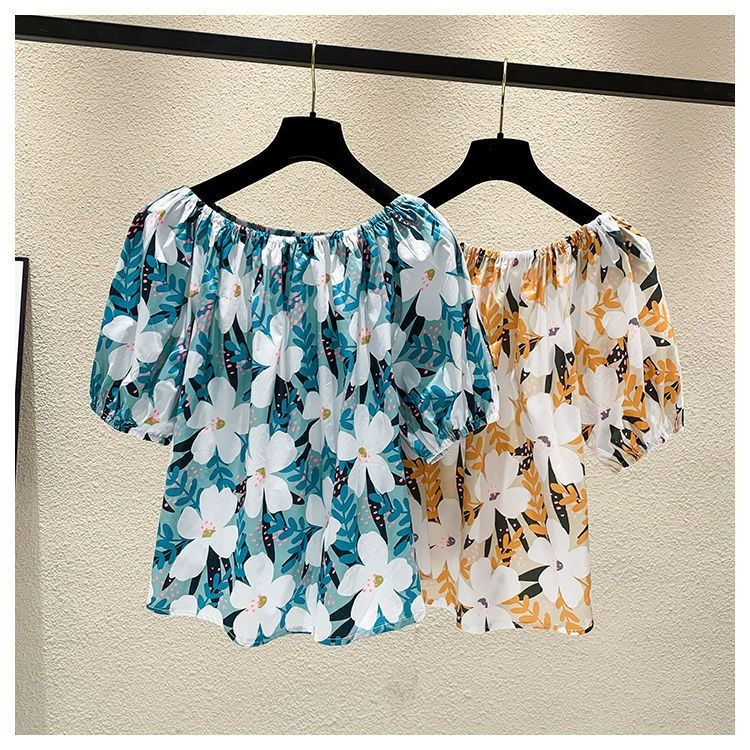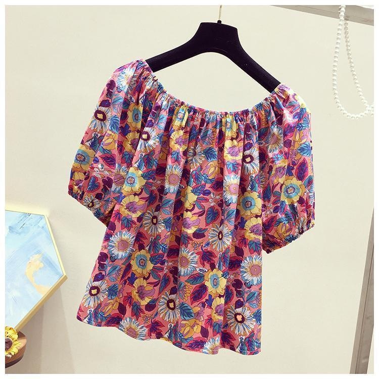 【오리지널】꽃무늬 원숄더 루즈핏 반팔 티셔츠 여성용 2025 여름 유니크하고 세련된 스타일의 탑스토어 가기