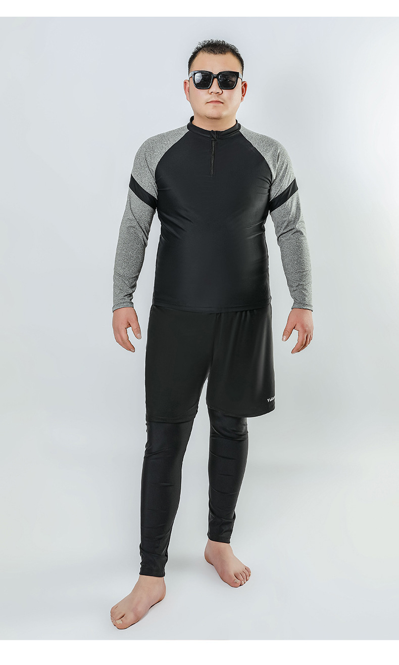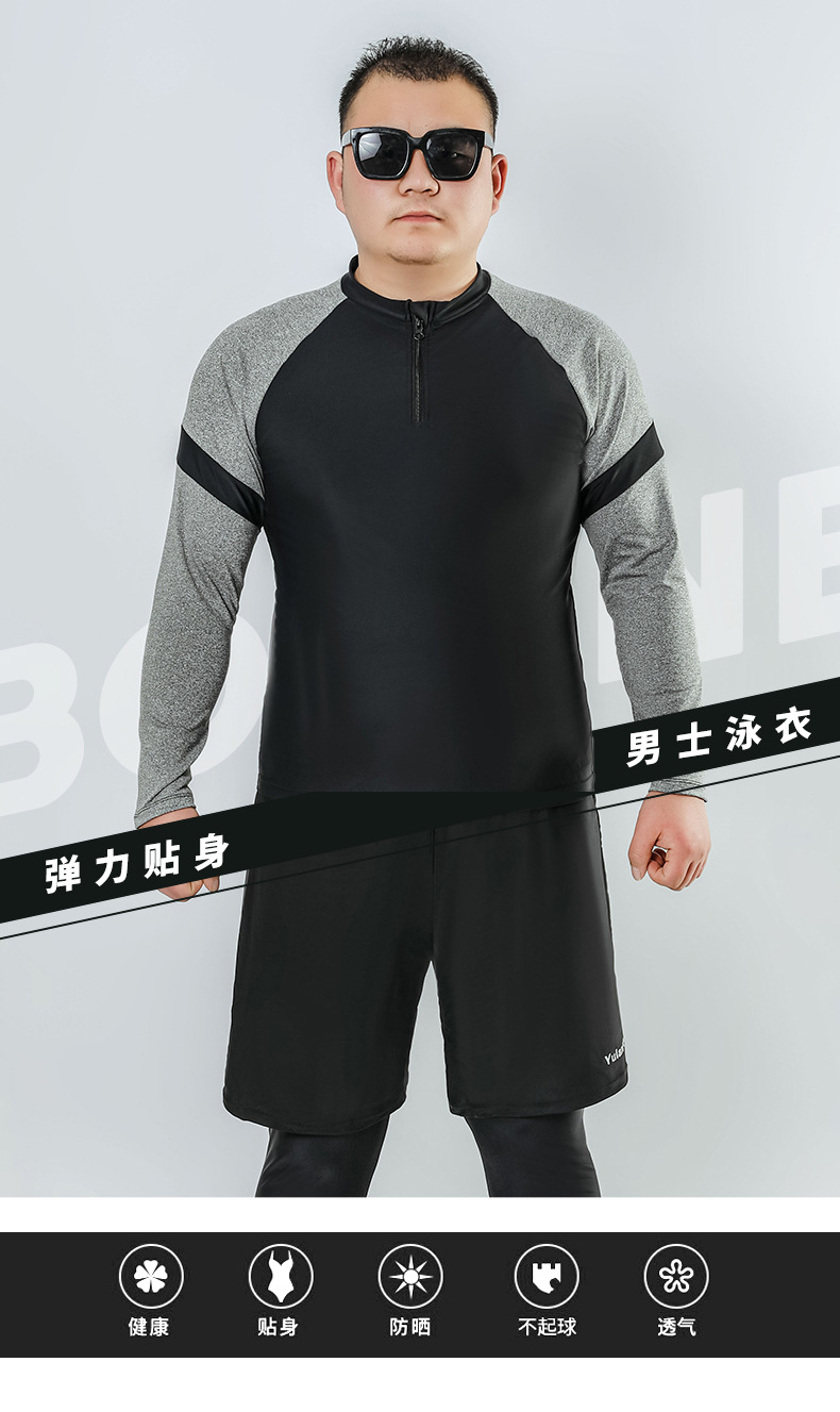 남자 플러스 사이즈 떠 다니는 다이빙 세트 수영복 표류 태양 보호 플러스 비료 플러스 사이즈 서퍼 바지 세트 지퍼 긴 소매 통통