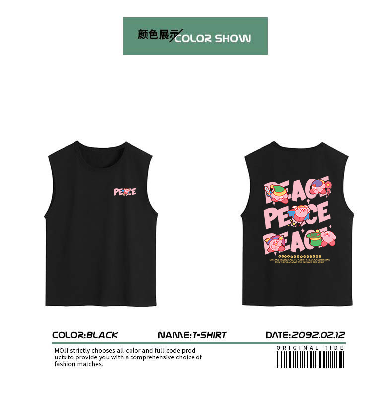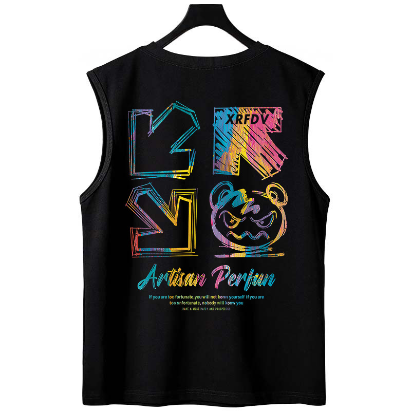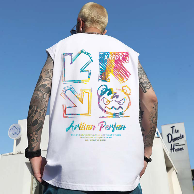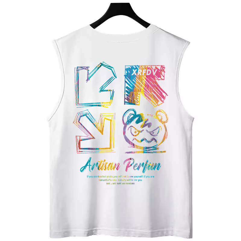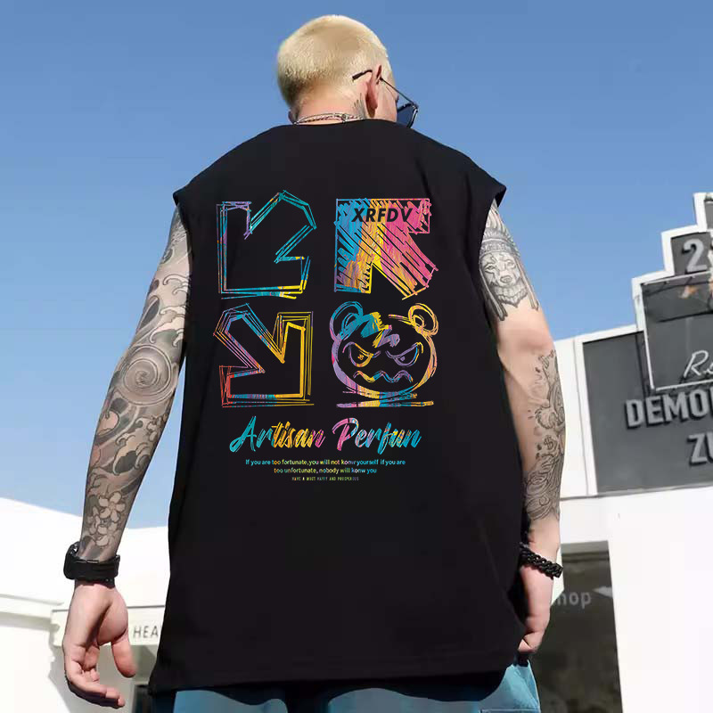 여름 민소매 티셔츠 남성 Ins 유행 플러스 사이즈 루즈 프린트 스웨트 셔츠 한국 스타일 유행 브랜드 플러스 사이즈 웨이스트 코트 조끼