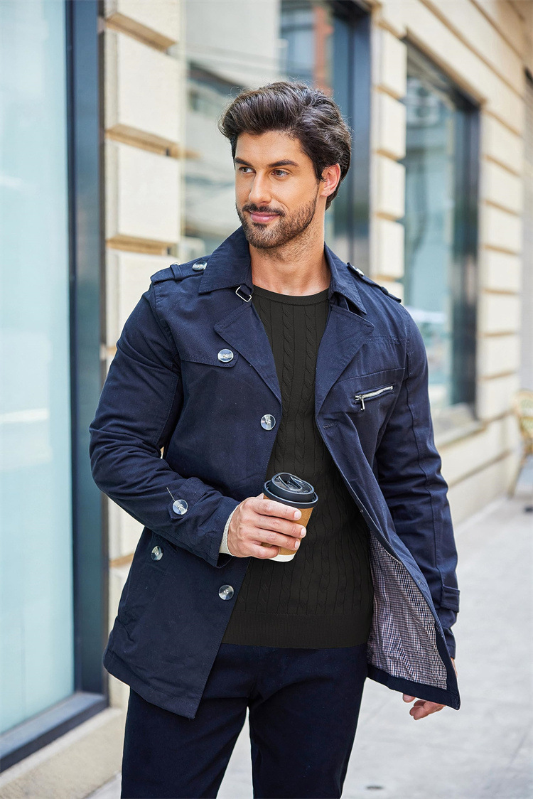가을과 겨울 새로운 남성용 둥근 목 니트 스웨터 슬림 핏 긴 소매 트위스트 단색 간단한 국경 니트 베이스 셔츠 남성용