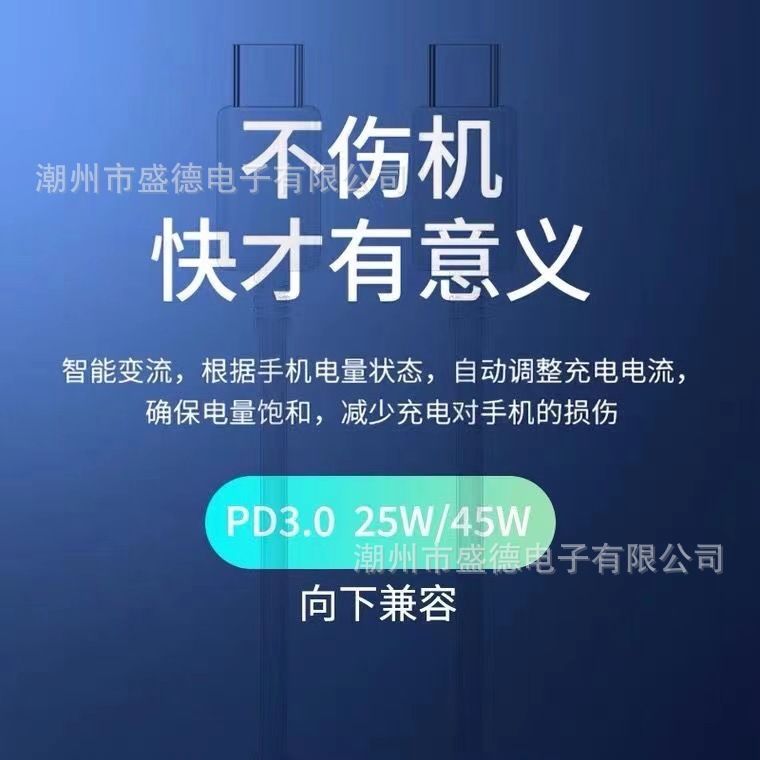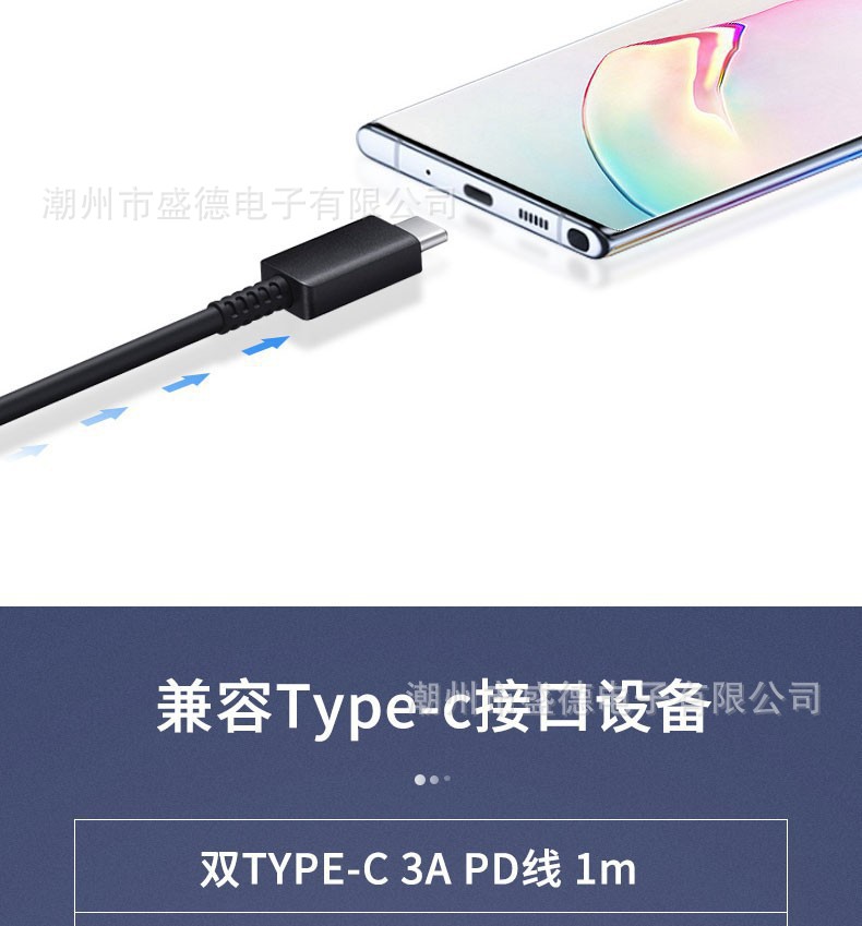 新款大电流PD快充数据线,支持PD快速充,耐用且双面均可用!双端接头选用标准的Type-C接口设计,很多新出的支持快充的设备都将使用这种接口数据线,相对其他的接口连接更紧密,传输更顺畅、快速!