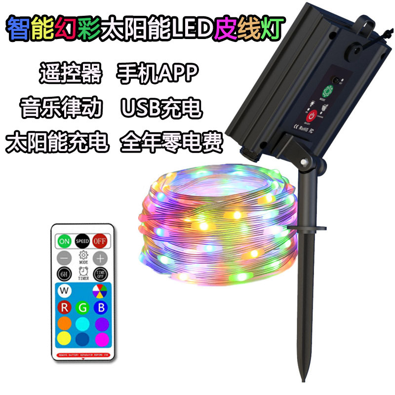 USB防水幻彩皮线灯带蓝牙APP音乐律动声控灯串户外圣诞露营氛围灯