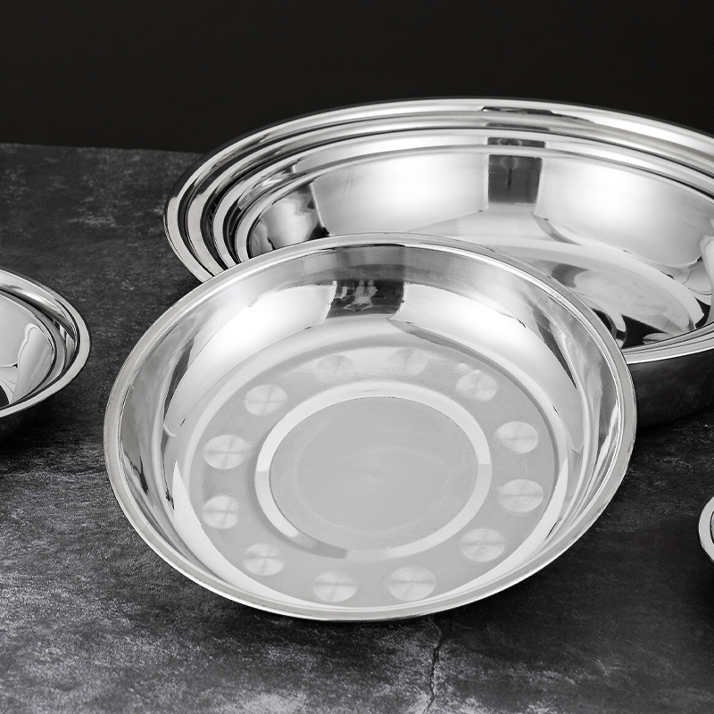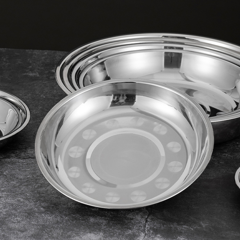 도매 두꺼운 스테인레스 스틸 디스크 심화 반찬 스낵 플레이트 과일 쌀 롤 평판 차가운 피부 바베큐 트레이스토어 가기