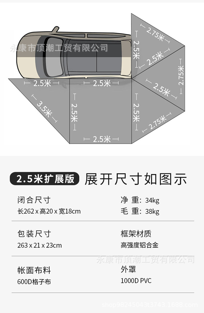360 도 확장 자동차 측면 텐트 측면 캐노피 텐트 방비 선 스크린 다리없는 팬 텐트 넓은 공간스토어 가기