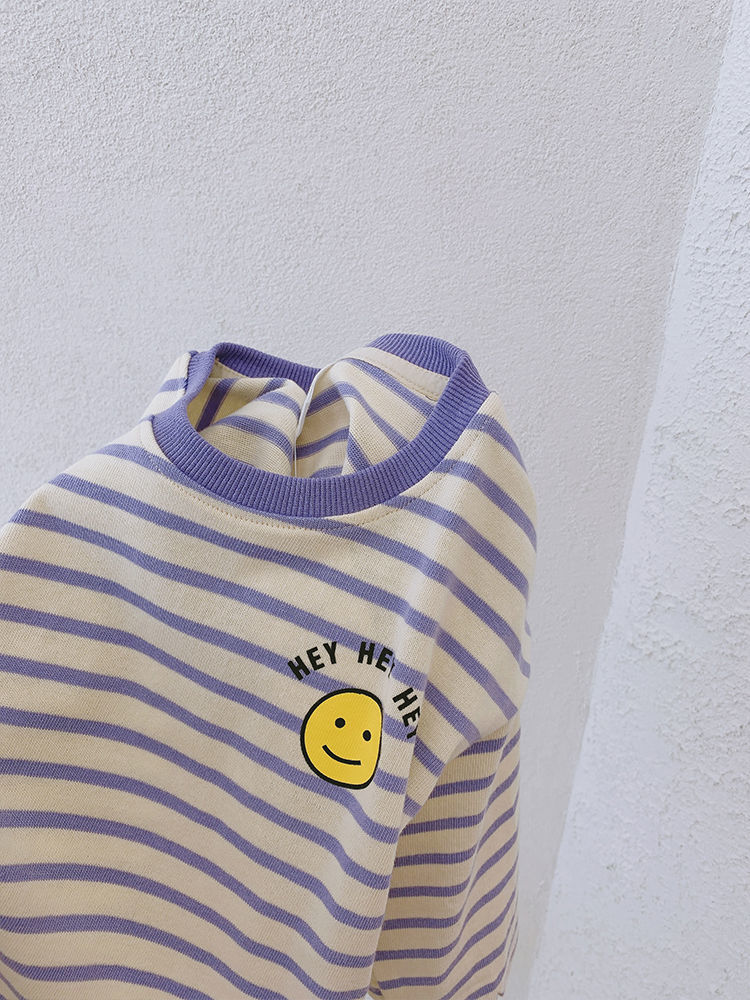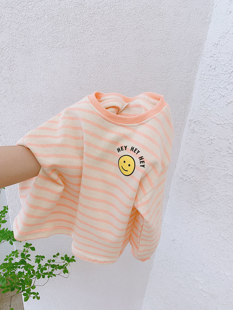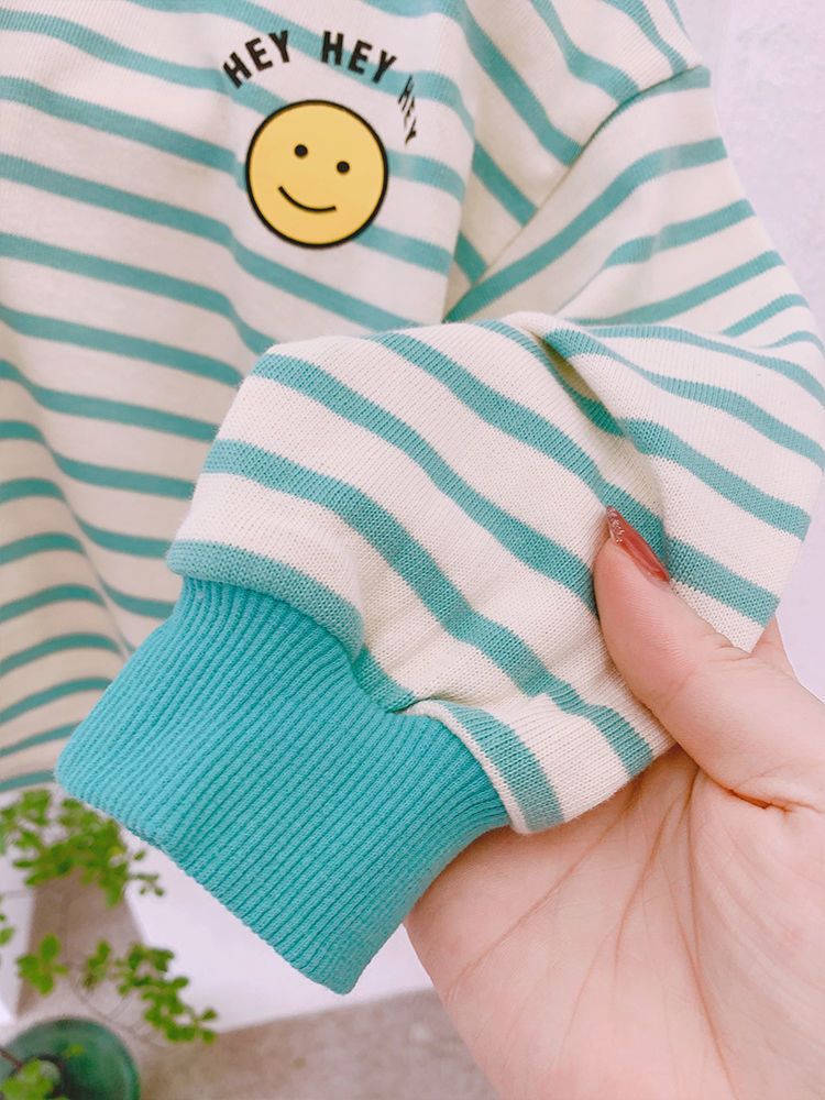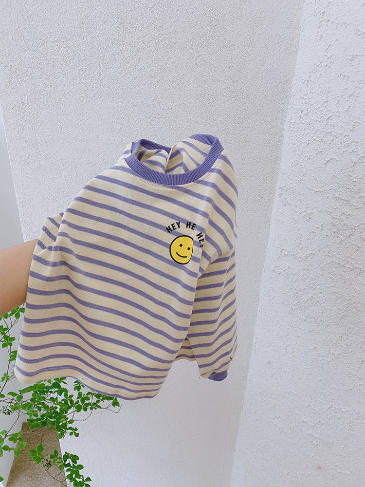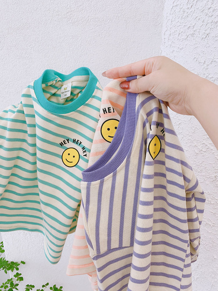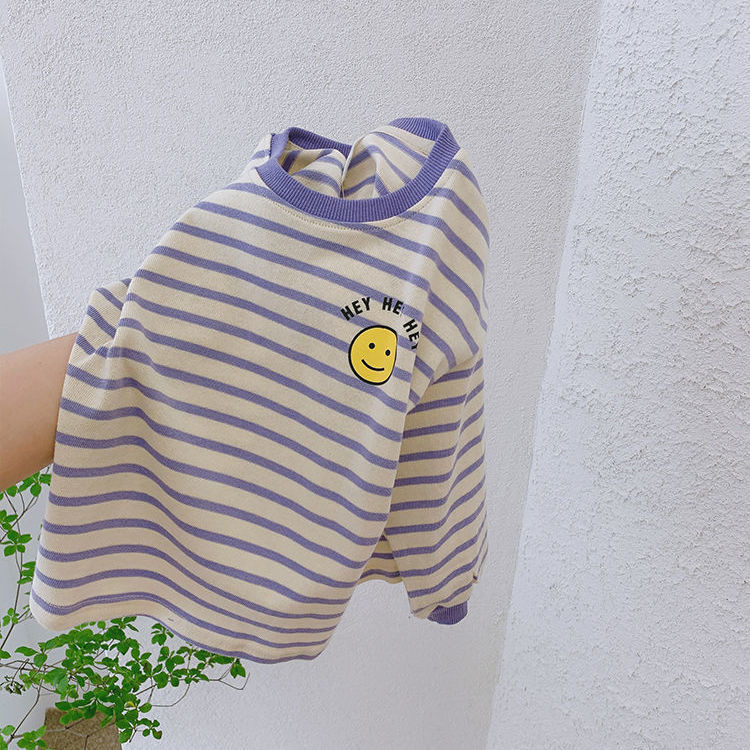 2025 새로운 어린이 캐주얼 운동복 티셔츠 스트라이프 스타일 봄, 가을 의류 소년과 소녀 면화 긴팔 탑 바닥 셔츠 t