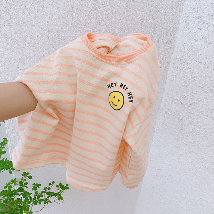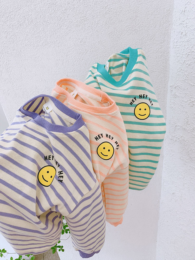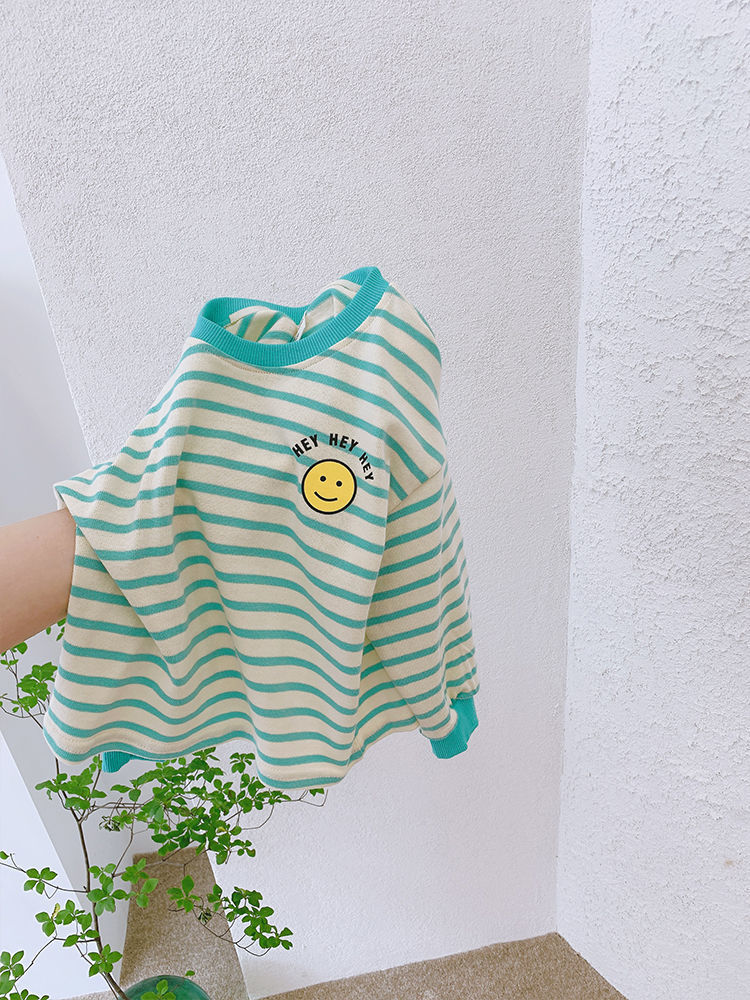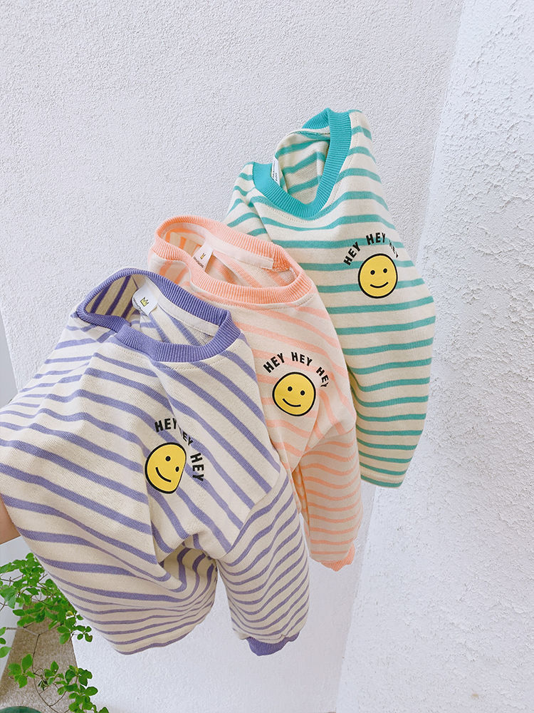2025 새로운 어린이 캐주얼 운동복 티셔츠 스트라이프 스타일 봄, 가을 의류 소년과 소녀 면화 긴팔 탑 바닥 셔츠 t스토어 가기