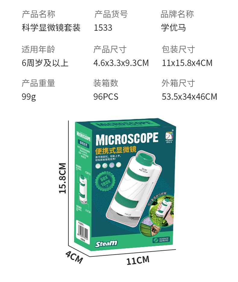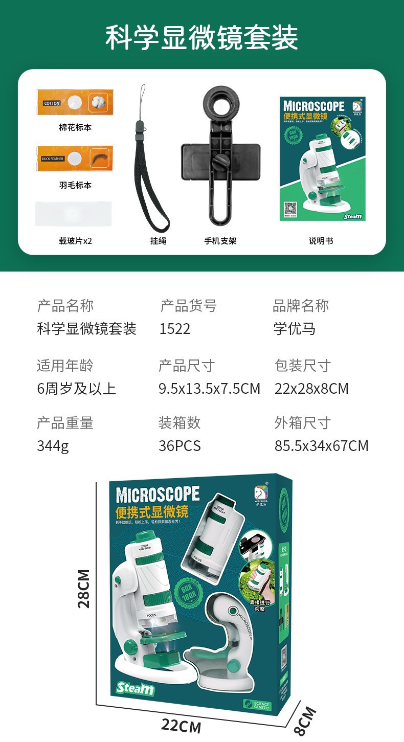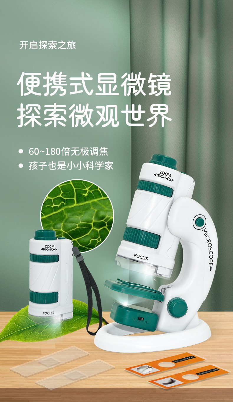 초등학생을위한 어린이 휴대용 현미경 과학 실험 세트 교육 장난감 중학교 소년 소녀 선물스토어 가기