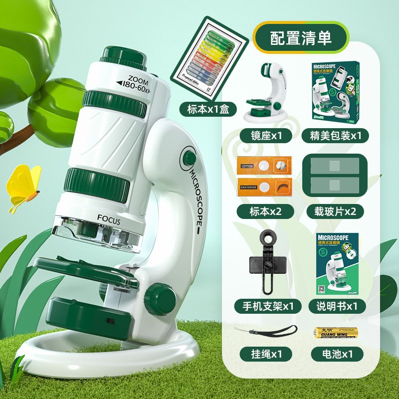 • 휴대용 현미경 세트 [1522] 흰색 녹색 12 표본
