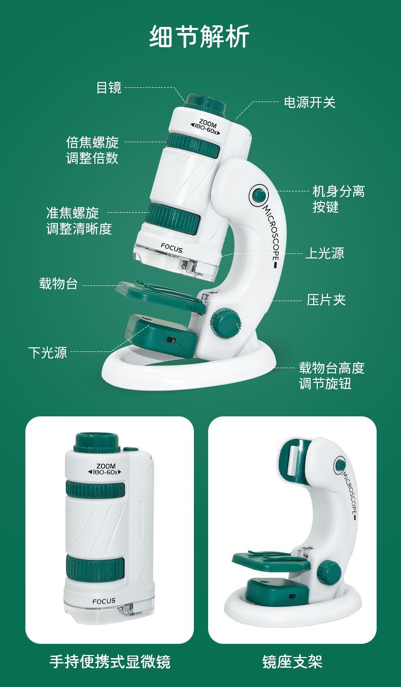 초등학생을위한 어린이 휴대용 현미경 과학 실험 세트 교육 장난감 중학교 소년 소녀 선물
