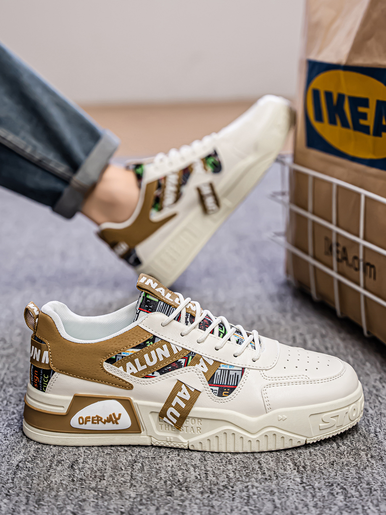 대외 무역 대형 남성 신발 여름 2025 새로운 유행 스포츠 및 레저 다목적 운동화 통기성 및 높이 증가 흰색 신발스토어 가기