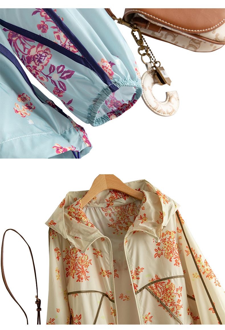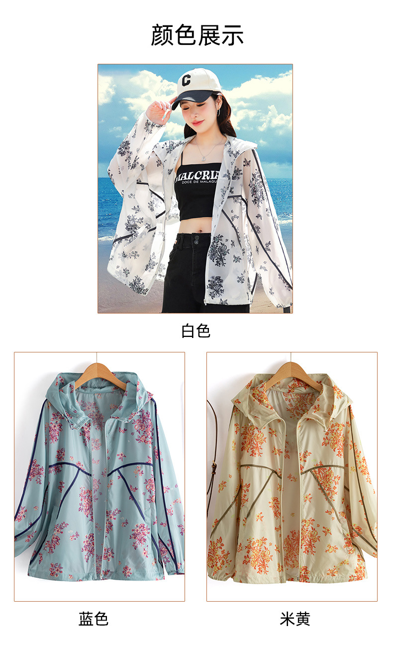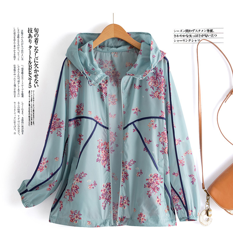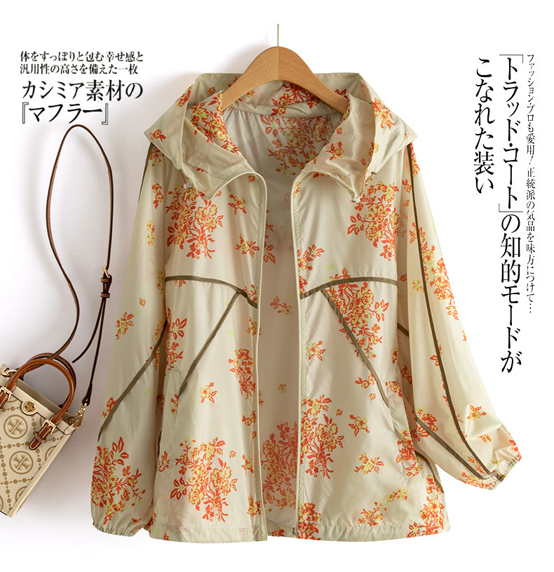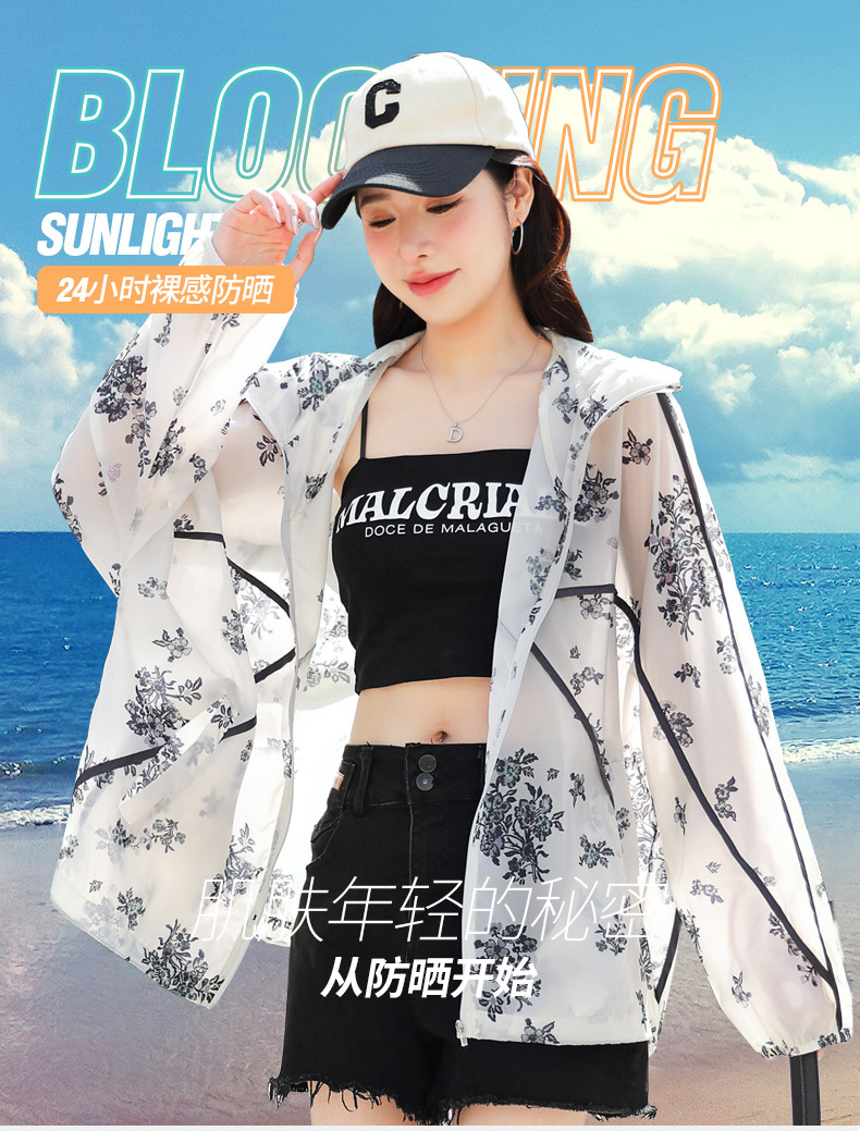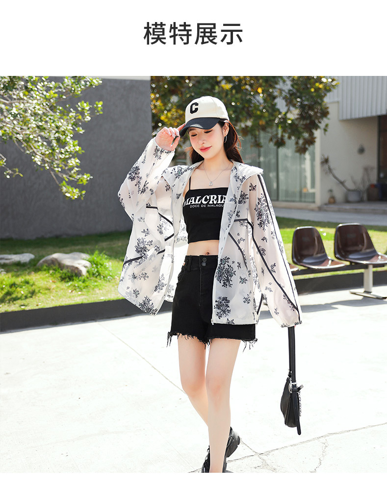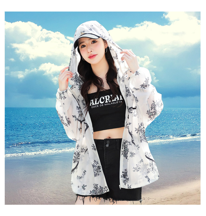 인쇄 된 태양 보호 의류 여성 여름 2024 새로운 통기성 얇은 올매치 한국식 태양 보호 의류 후드 느슨한 태양 보호 셔츠