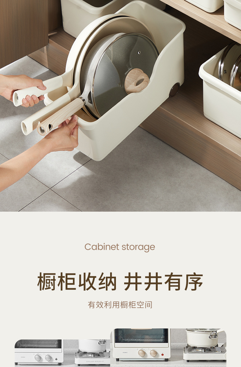 【오리지널】냄비 보관함 주방 수납 가정용 다기능 플라스틱 주방 캐비닛 대형 수납함 냉장고 잡화