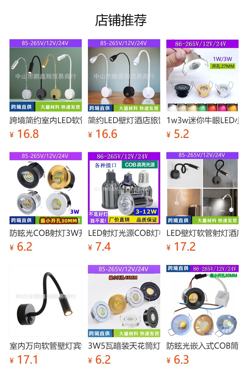 -------本品适用于AC85-265V电压,灯体为铝材质,优质LED光源,高亮节能省电,寿命长,无频闪,品质保证。国内外都可以用,通电即亮