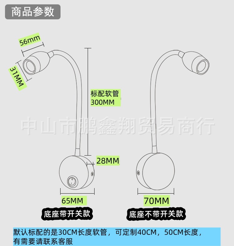 本款LED灯标配灯杆长度为30CM,可根据需要随意弯曲方向