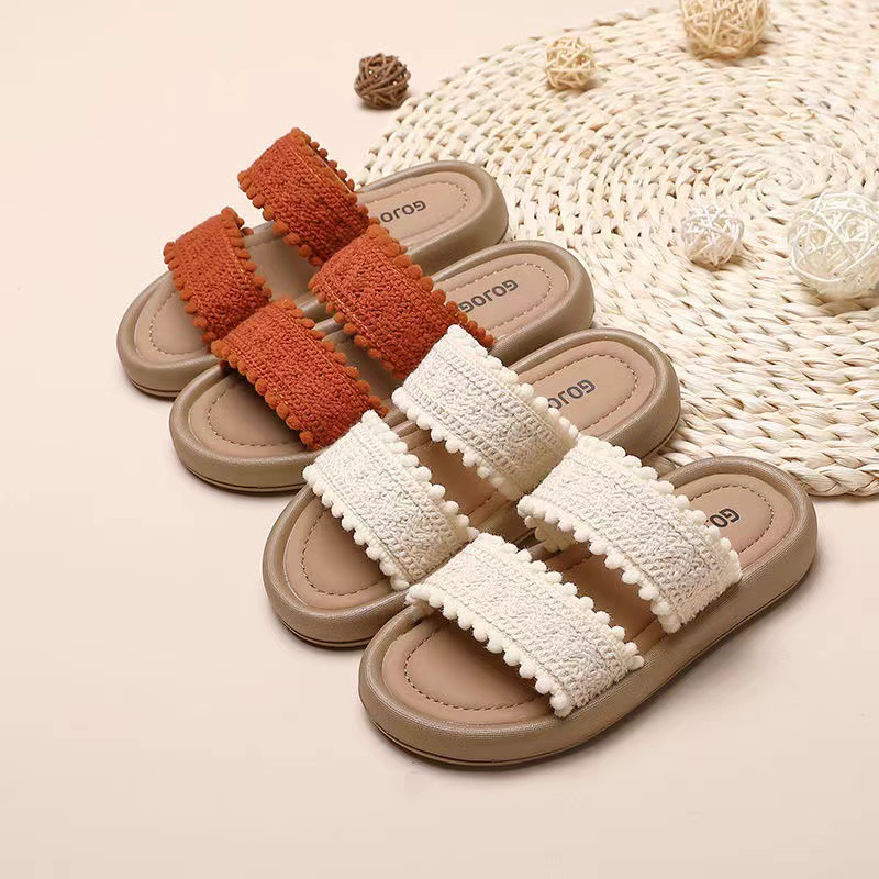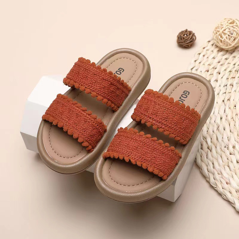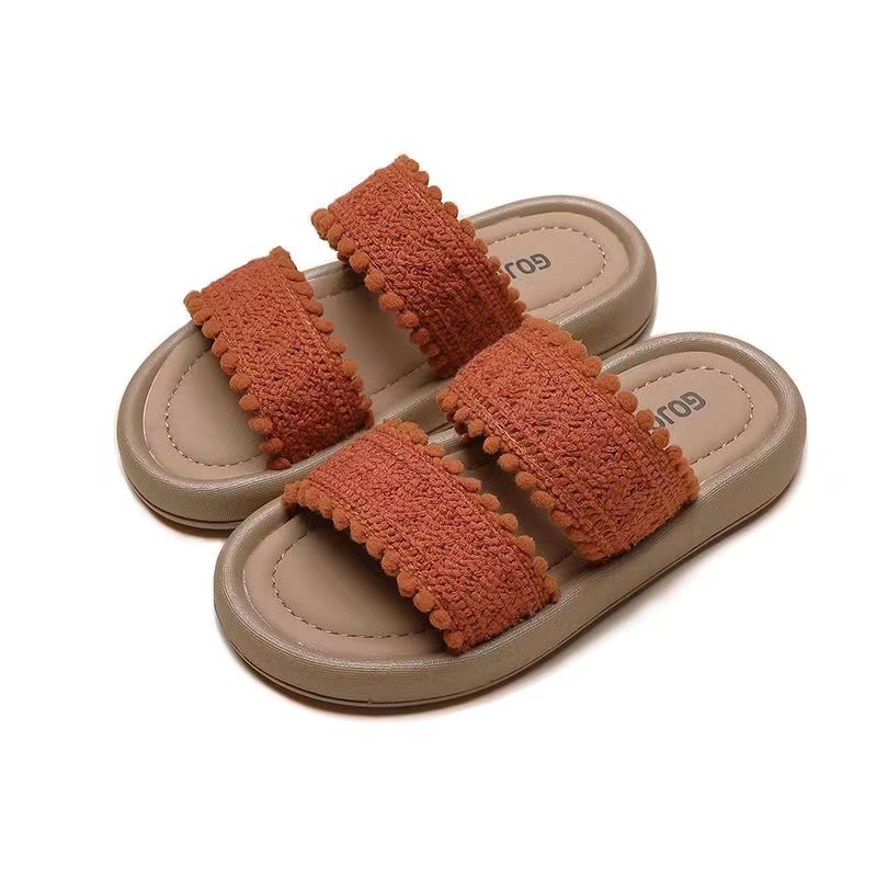 2025 새로운 여자 짠 스타일 슬리퍼 여름 실내 및 실외 편안한 미끄럼 방지 캐주얼 슬리퍼 어린이 및 중년 어린이를위한