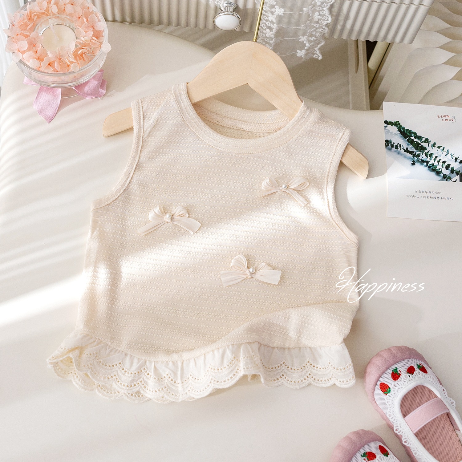 소녀의 세련된 3 차원 보우 조끼 한국 스타일 패션 레이스 민소매 티셔츠 아기의 여름 올 매치 탑 트렌디스토어 가기