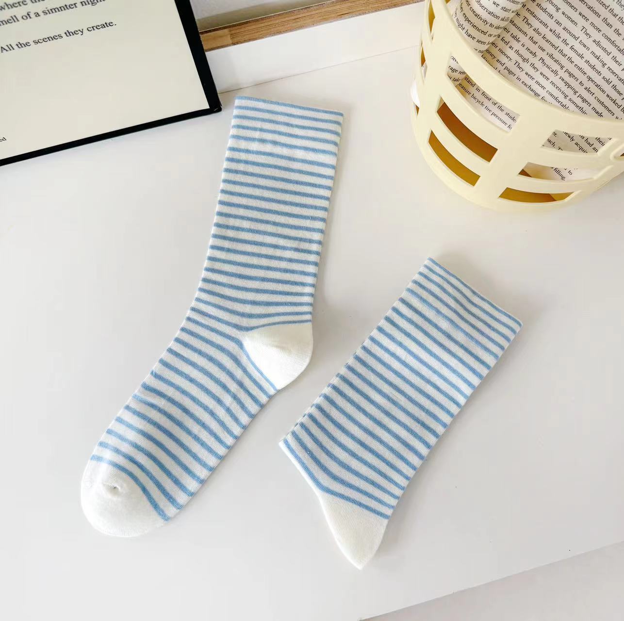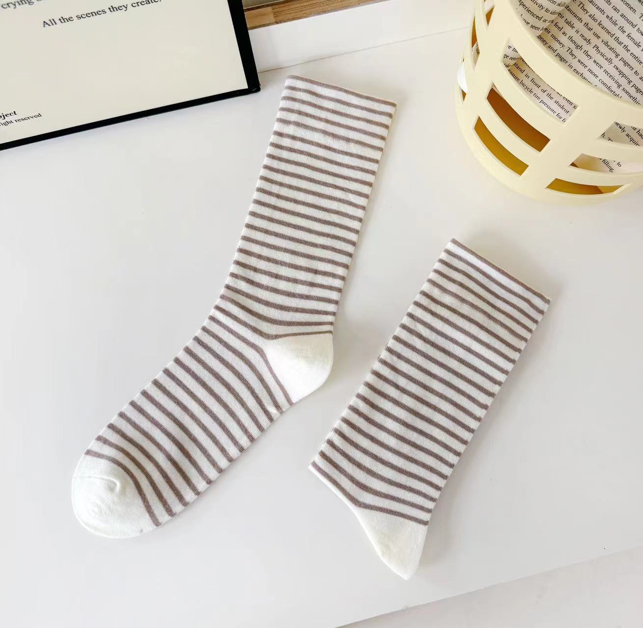 스트라이프 솔리드 컬러 뼈없는 양말 여성용 미드 길이 양말 트렌디 올매치 코튼 양말 느슨한 문 양말 부드럽고 편안한 스타킹