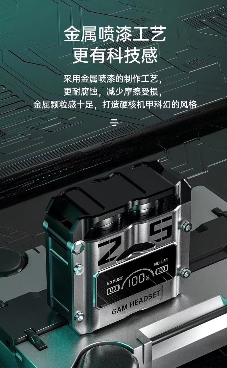 국경 간 M25 블루투스 헤드셋 무선 터치 금속 메카 스타일 저전력 전자 스포츠 게임 디지털 디스플레이 헤드셋스토어 가기