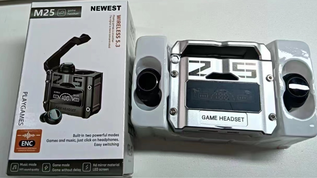 국경 간 M25 블루투스 헤드셋 무선 터치 금속 메카 스타일 저전력 전자 스포츠 게임 디지털 디스플레이 헤드셋