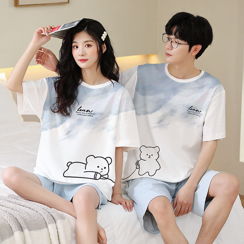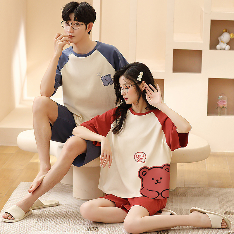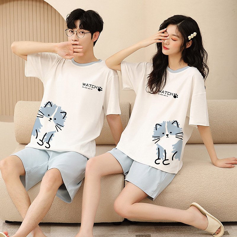 2024 여름 새 커플 잠옷 순면 고급 잠옷 남녀 100 면 홈 옷 착용스토어 가기