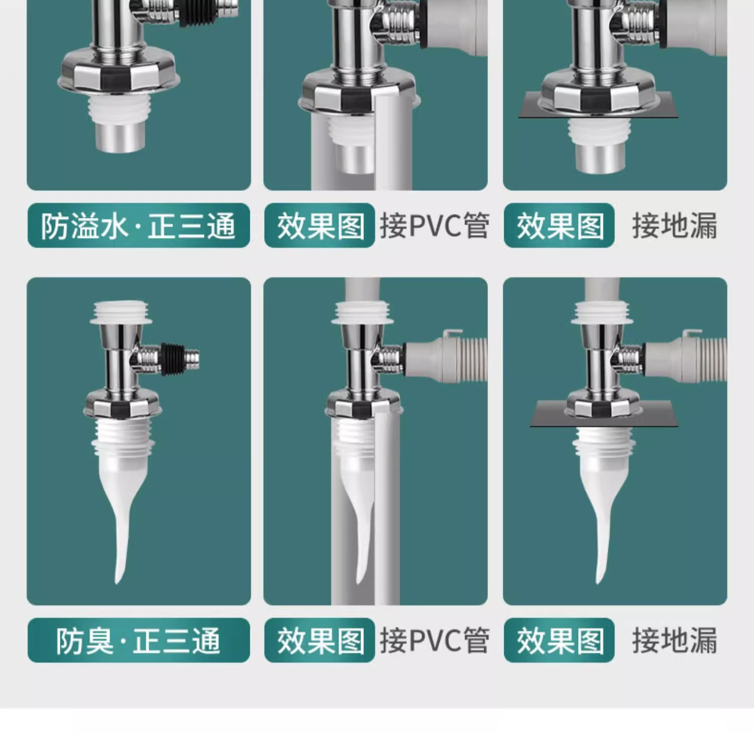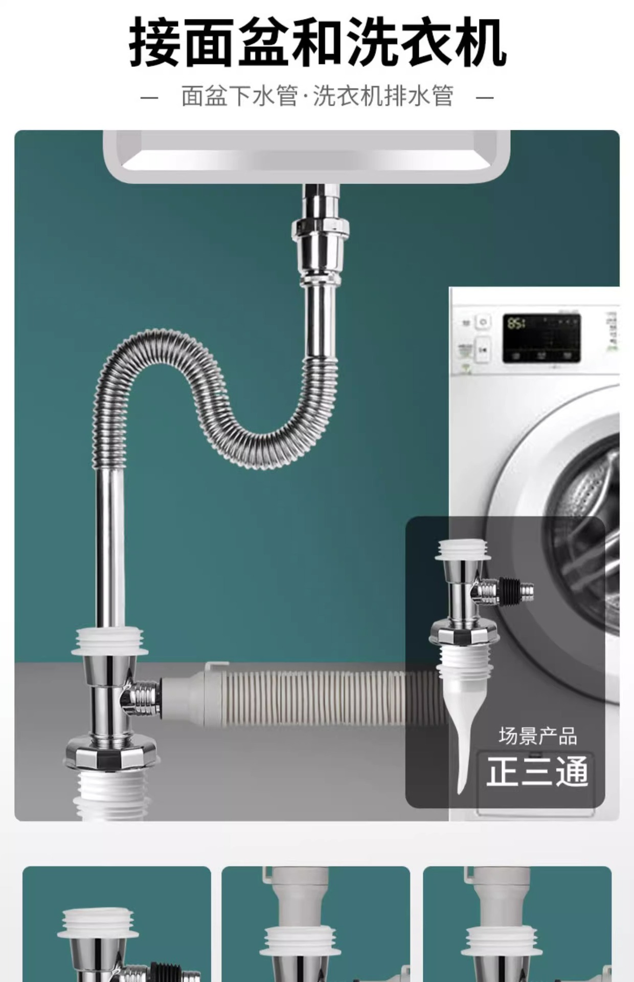 3 헤드 하수관, 세탁기 배수관, 바닥 배수관, 인터페이스, 엉덩이 관절, 채널, 3 방향 물 분리기, 2 대 1스토어 가기