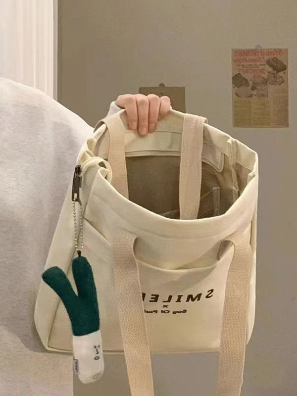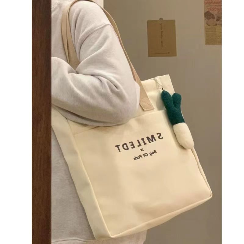 대학생 클래스 캔버스 가방 여성의 2023 새로운 캐주얼 올 매치 숄더 백 대용량 작업 통근 토트 백스토어 가기
