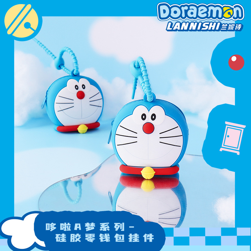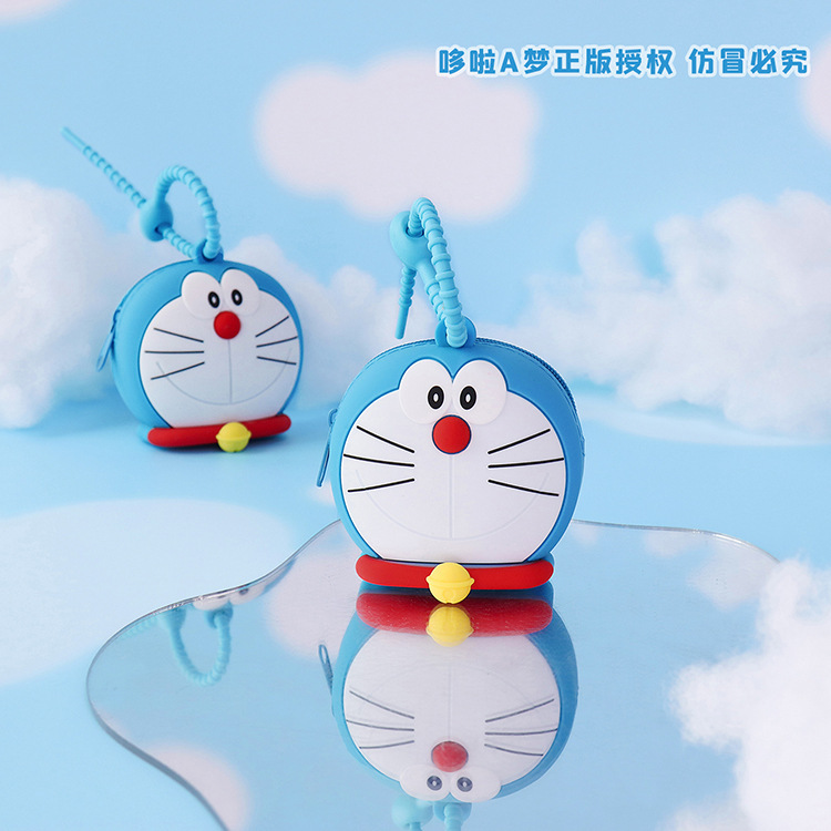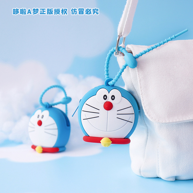 정품 도라에몽 동전 지갑 키 가방 작은 도라에몽 헤드셋 저장 가방 창조적 인 귀여운 미니 가방