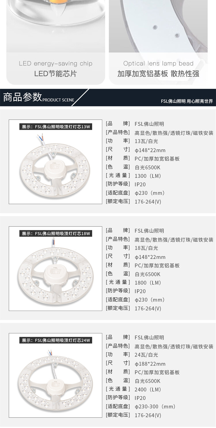 FSL 불산 조명 풀 스펙트럼 led 천장 램프 윅 교체 모듈 자기 흡입 컵 램프 붙여 넣기 홈 라이트 스트립