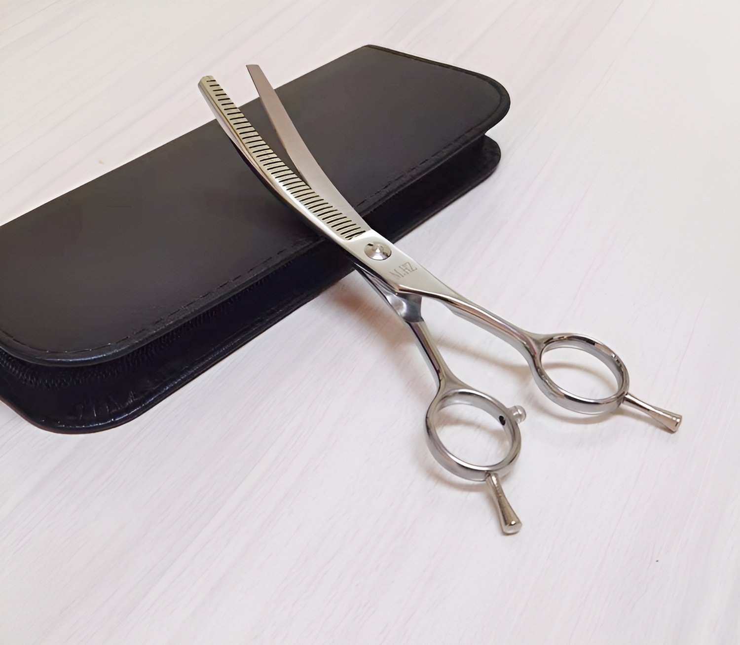• 7inch 곡선 퍼프 가위 + 빗 + 가위 가방