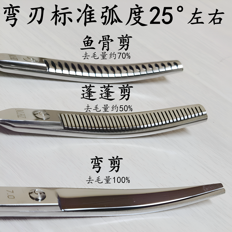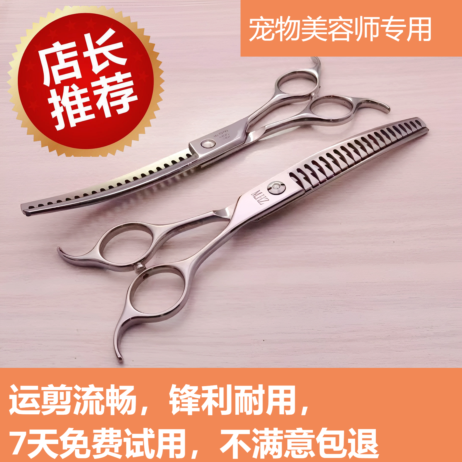 애완 동물 미용 가위 곡선 생선 가위 곡선 Shentown 가위 개 머리 면도 도구 애완 동물 미용스토어 가기