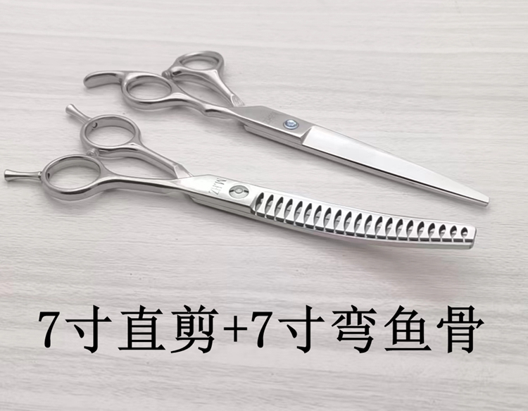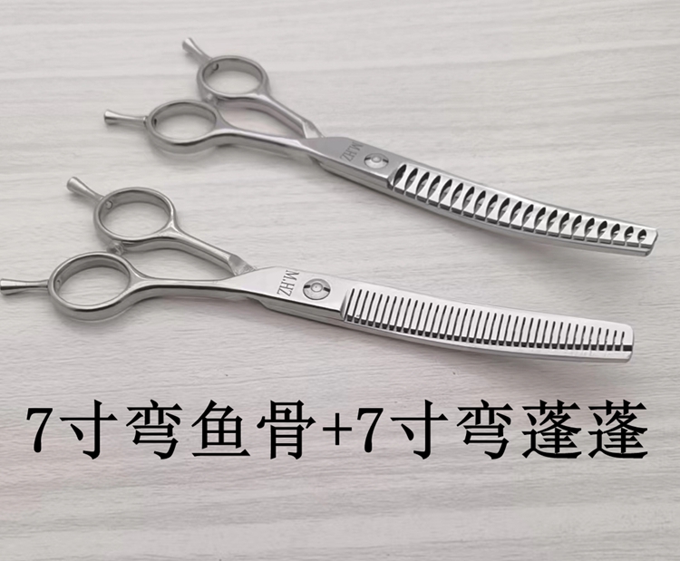 • 7inch 곡선 생선 뼈 가위 + 7inch 곡선 퍼프 가위 + 행 빗