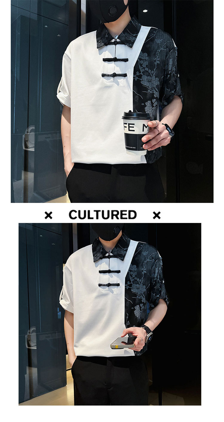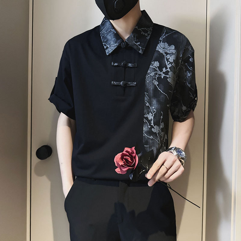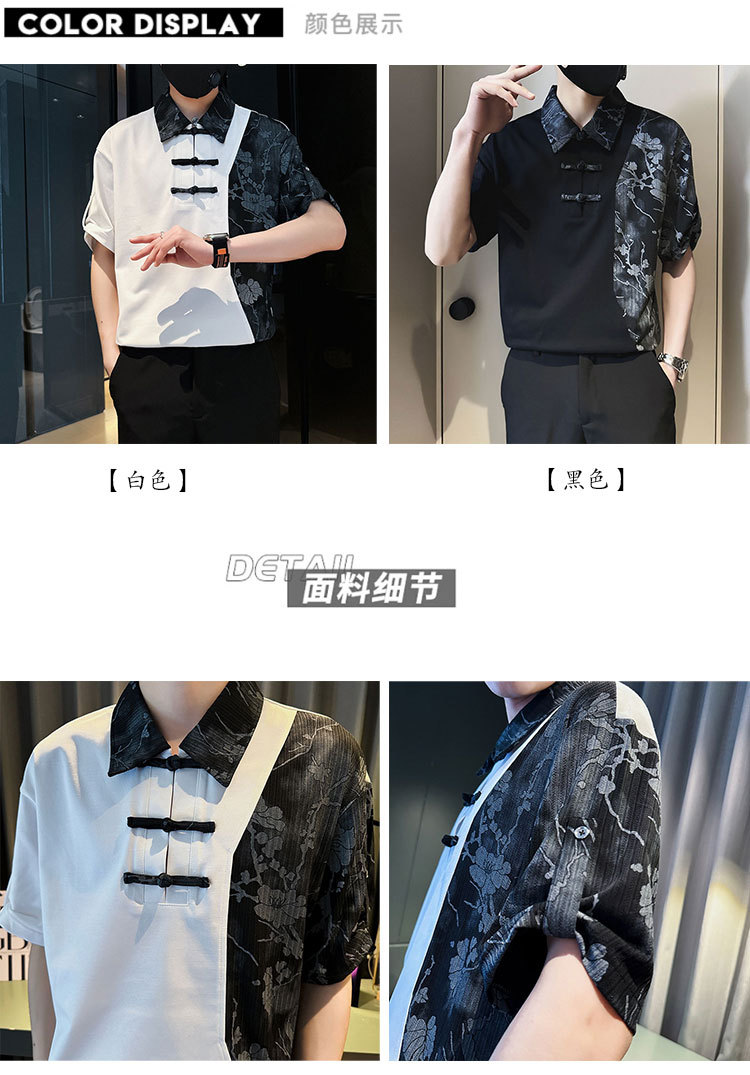 새로운 중국 스타일 셔츠 남성용 반소매 트렌디 브랜드 캐주얼 리퍼 핸섬 남성 톱 2024 뉴 여름 대비 컬러 반소매 셔츠