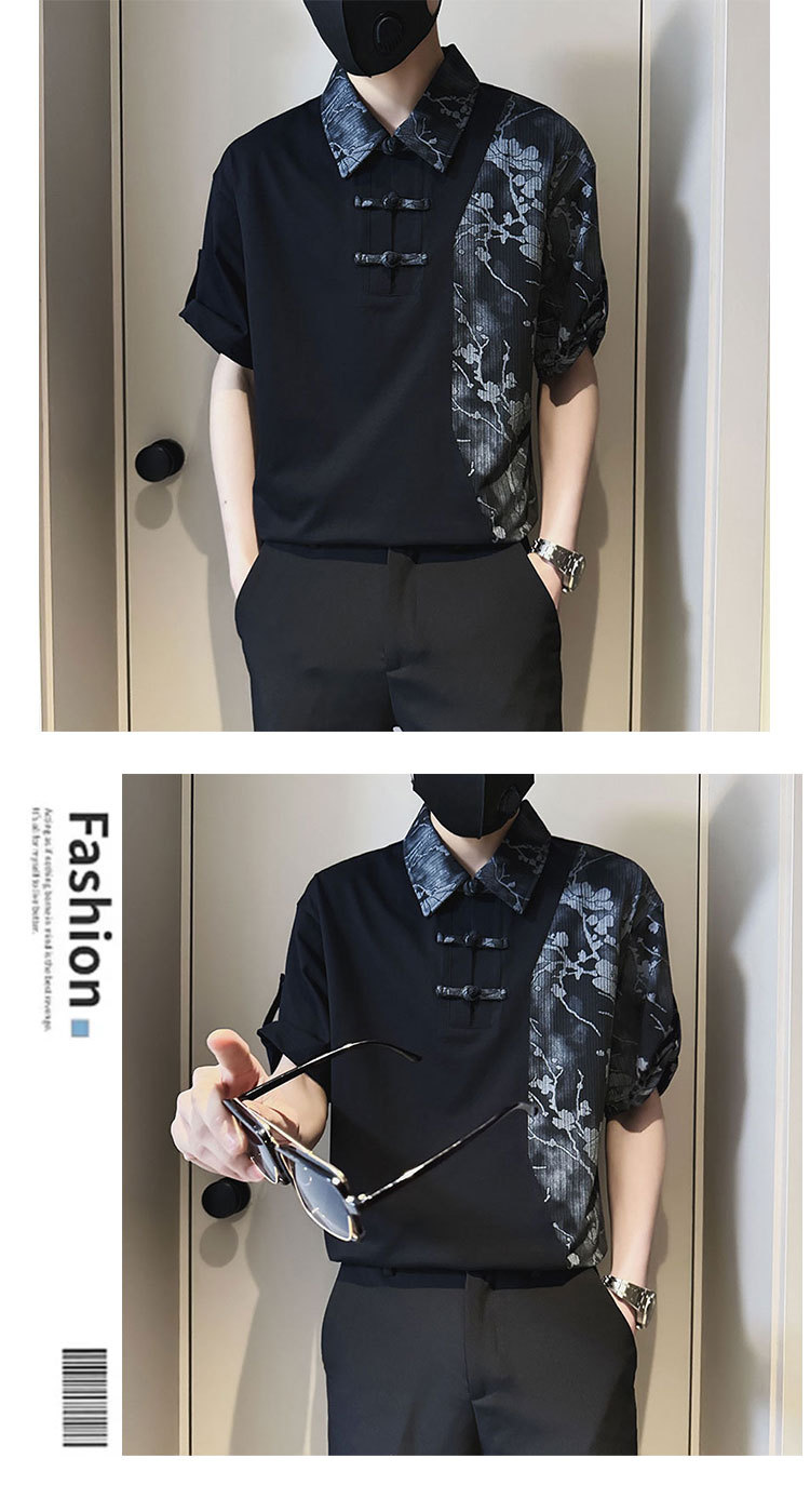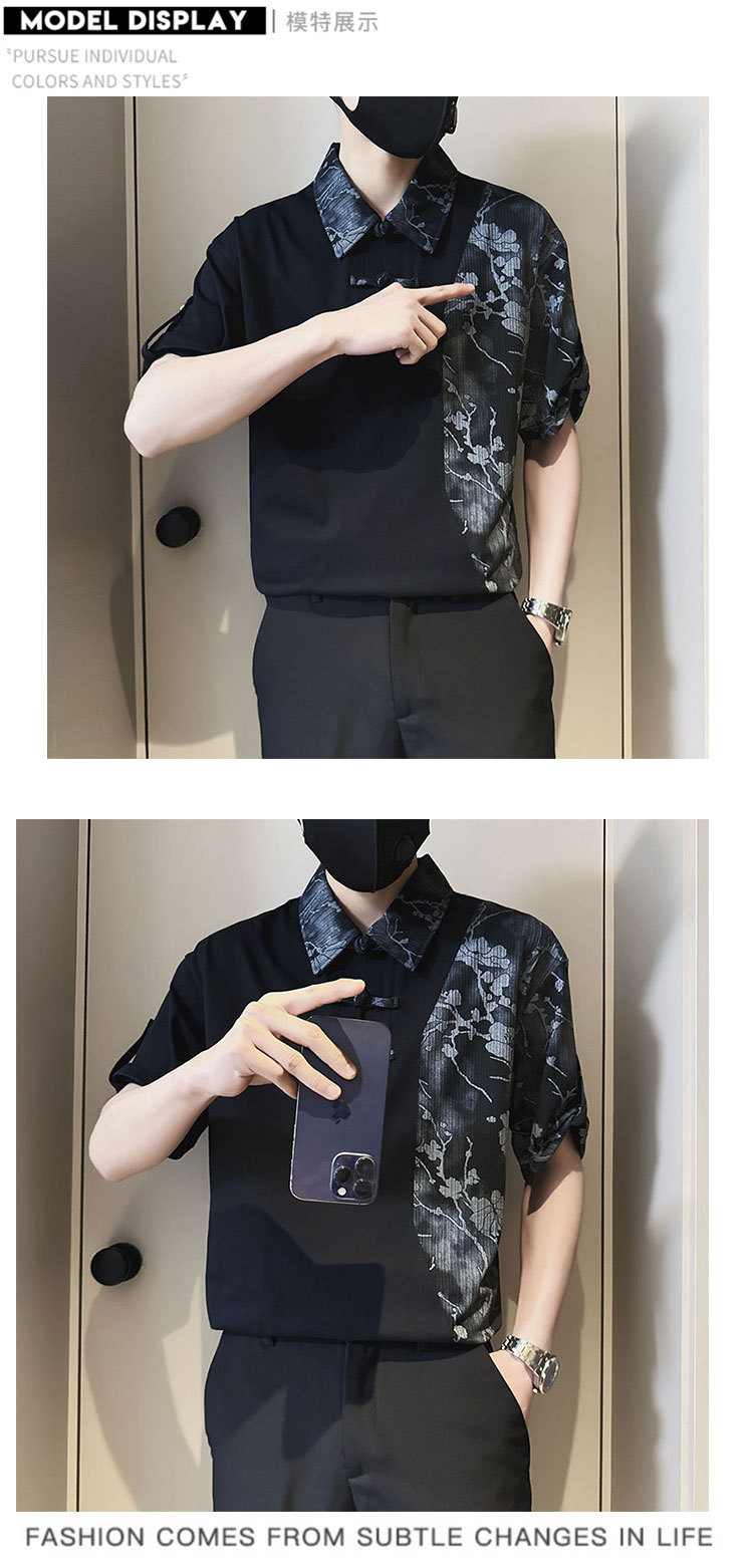 새로운 중국 스타일 셔츠 남성용 반소매 트렌디 브랜드 캐주얼 리퍼 핸섬 남성 톱 2024 뉴 여름 대비 컬러 반소매 셔츠스토어 가기