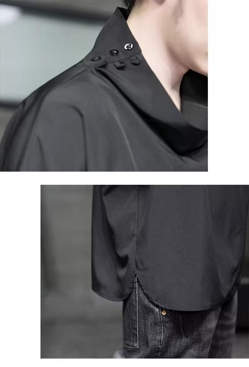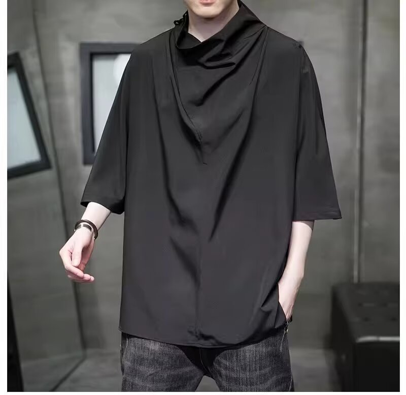 2024 년 여름 하이 파일 칼라 반팔 남성 중국 스타일 디자인 센스 반팔 티셔츠 하이 엔드 드랩 무거운 느슨한 옷