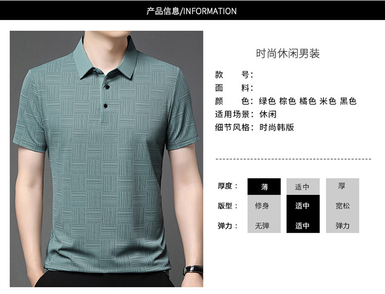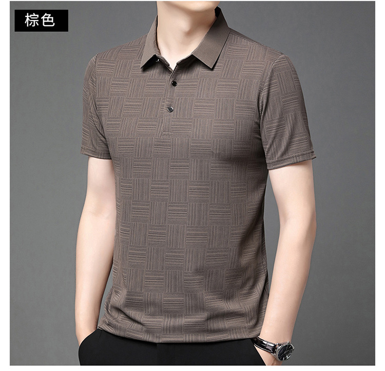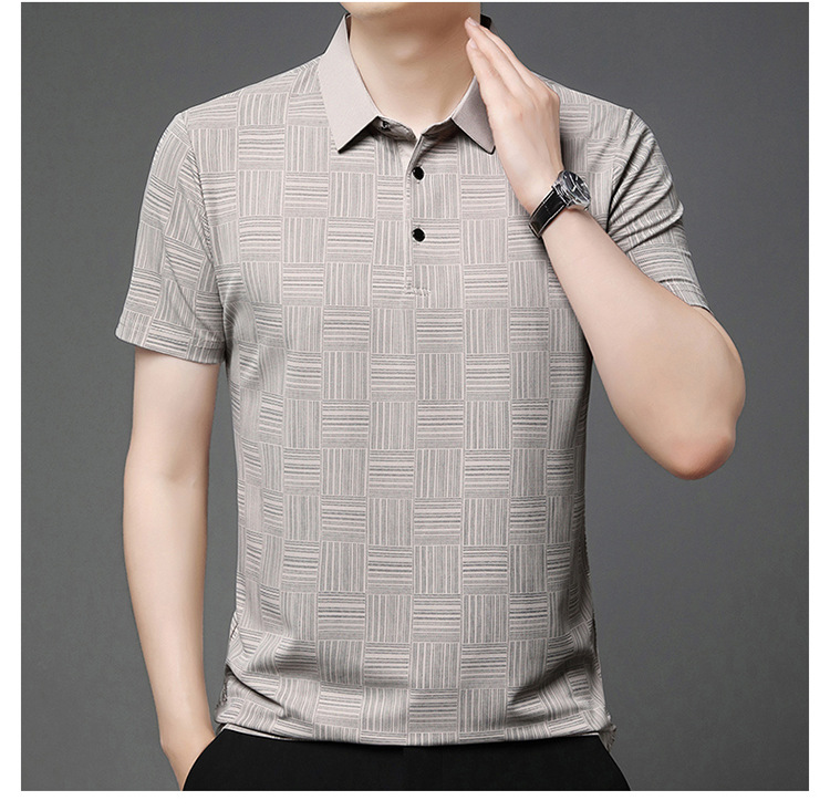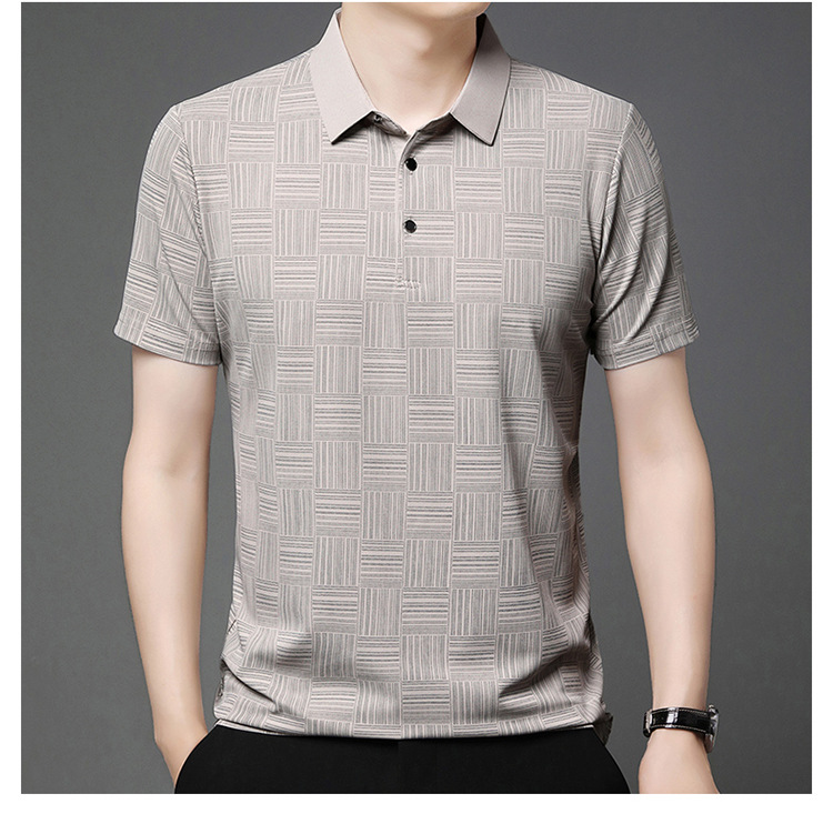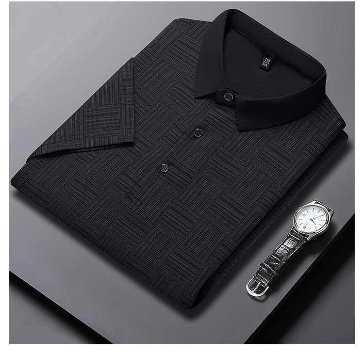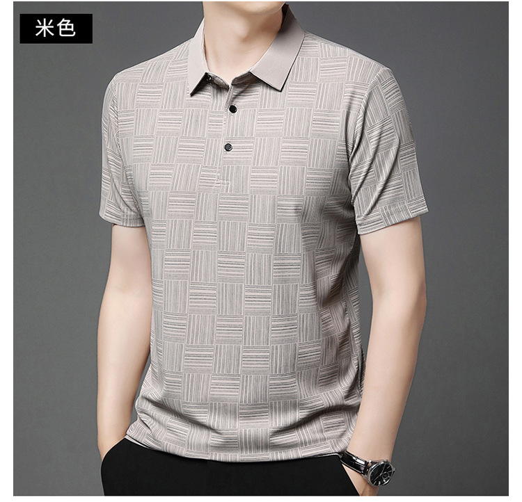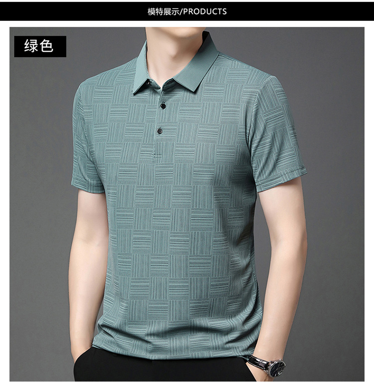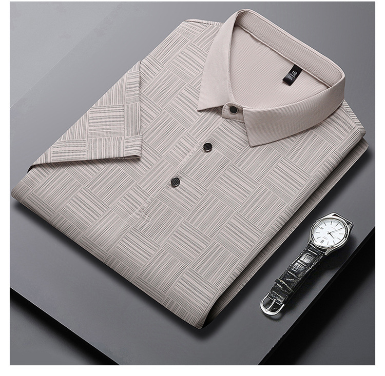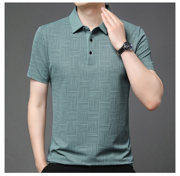 여름 남자 격자 무늬 셔츠 유행 편안한 반팔 올 매치 상쾌한 티셔츠 캐주얼 아빠의 얇은 T 아이스 실크 탑