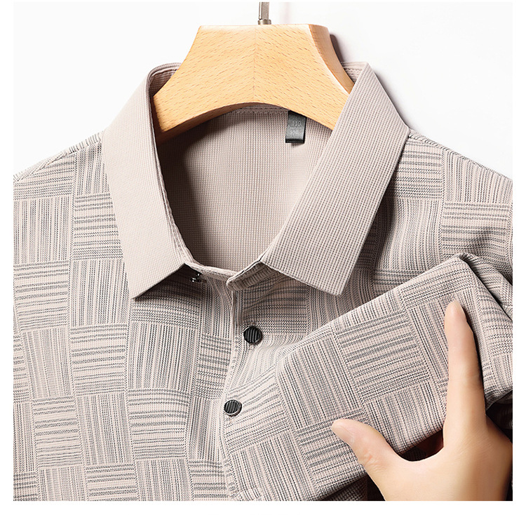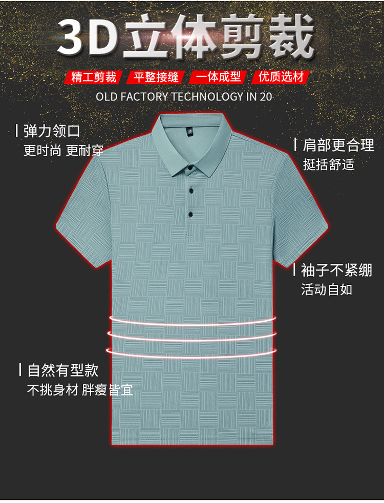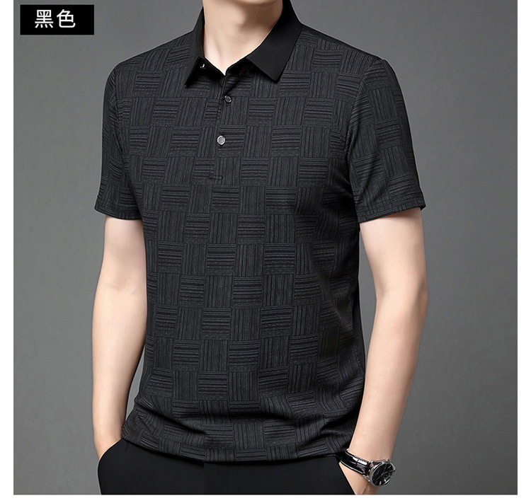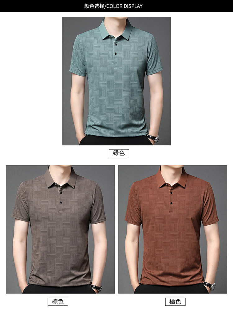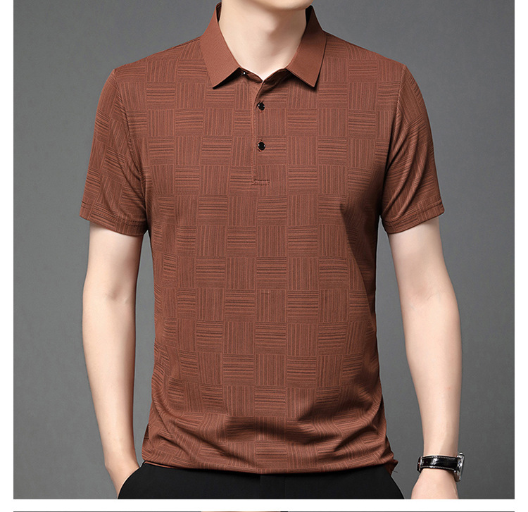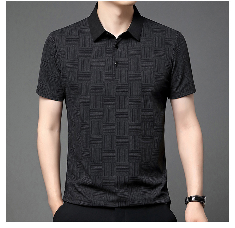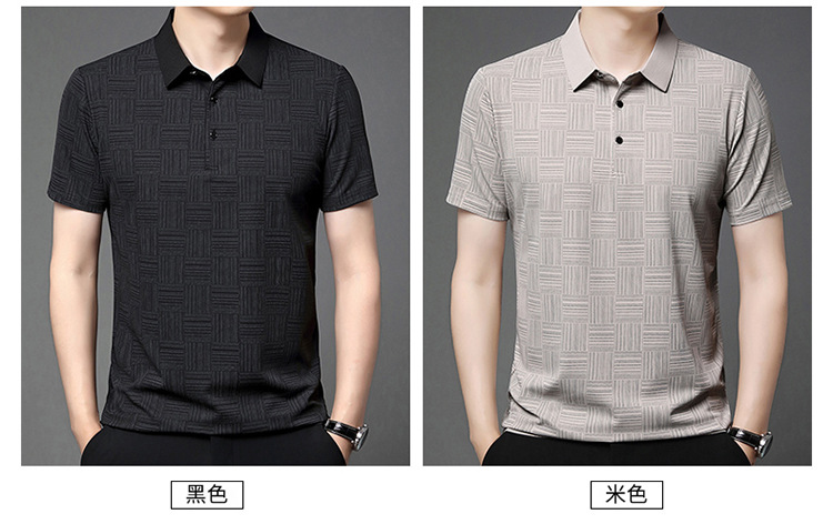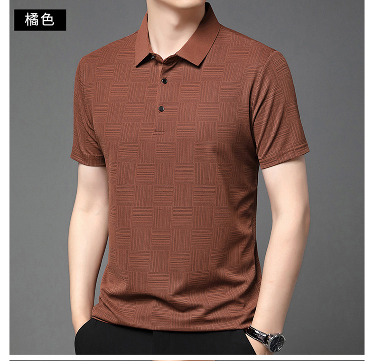 여름 남자 격자 무늬 셔츠 유행 편안한 반팔 올 매치 상쾌한 티셔츠 캐주얼 아빠의 얇은 T 아이스 실크 탑