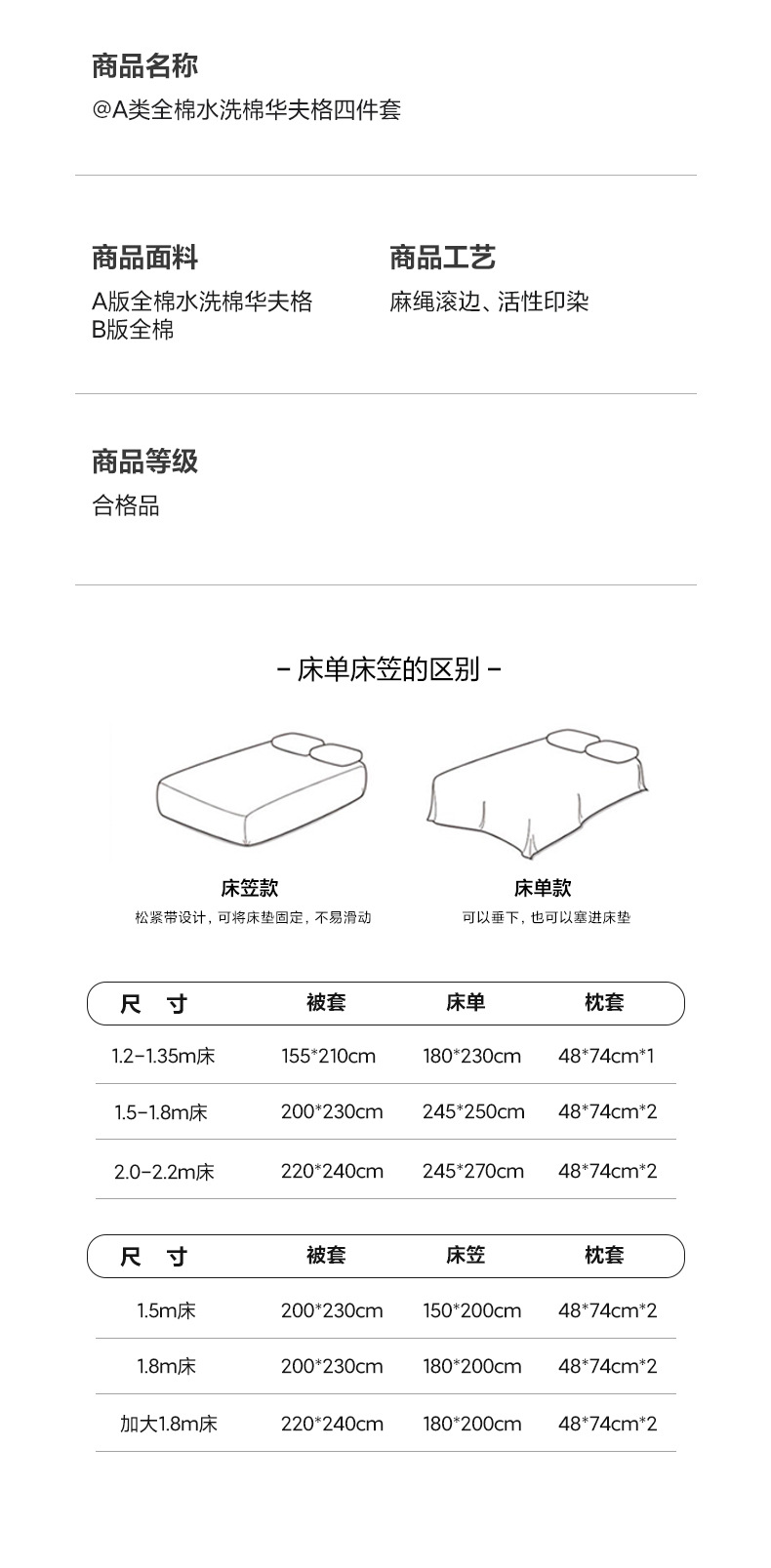 • 1.8m 시트 4 피스 세트 [퀼트 커버 200*230cm]]