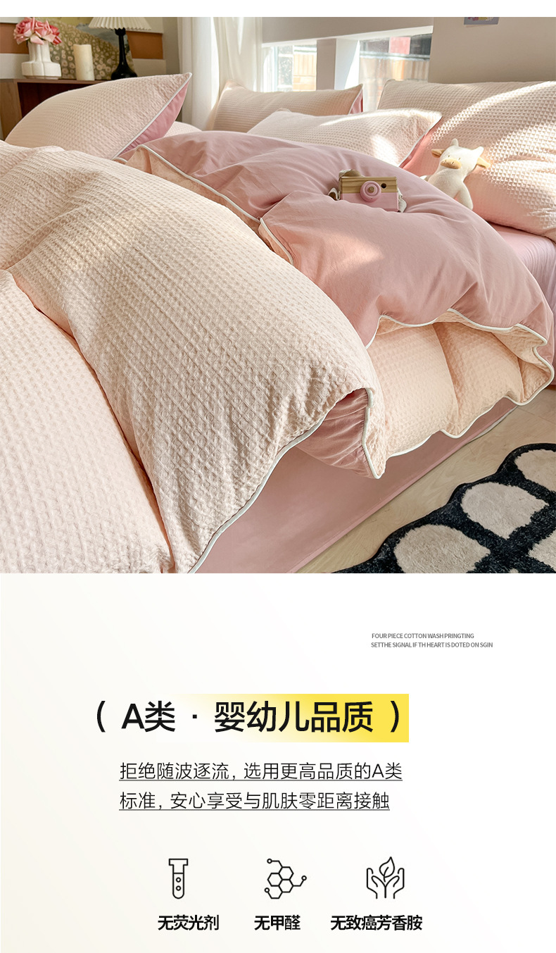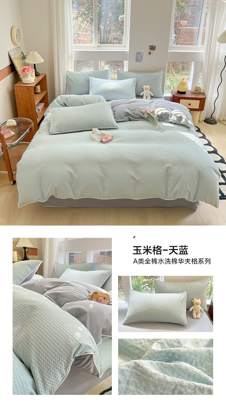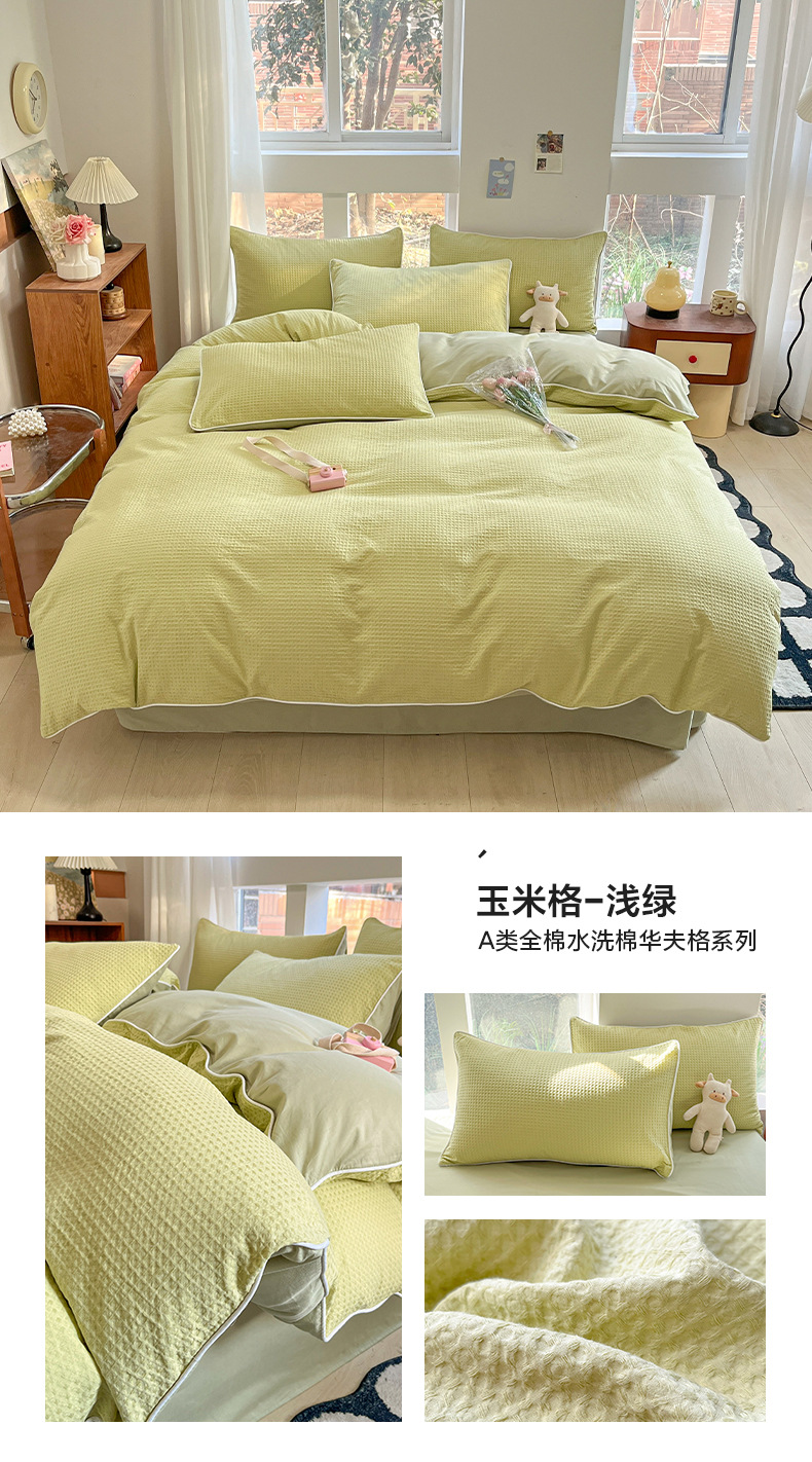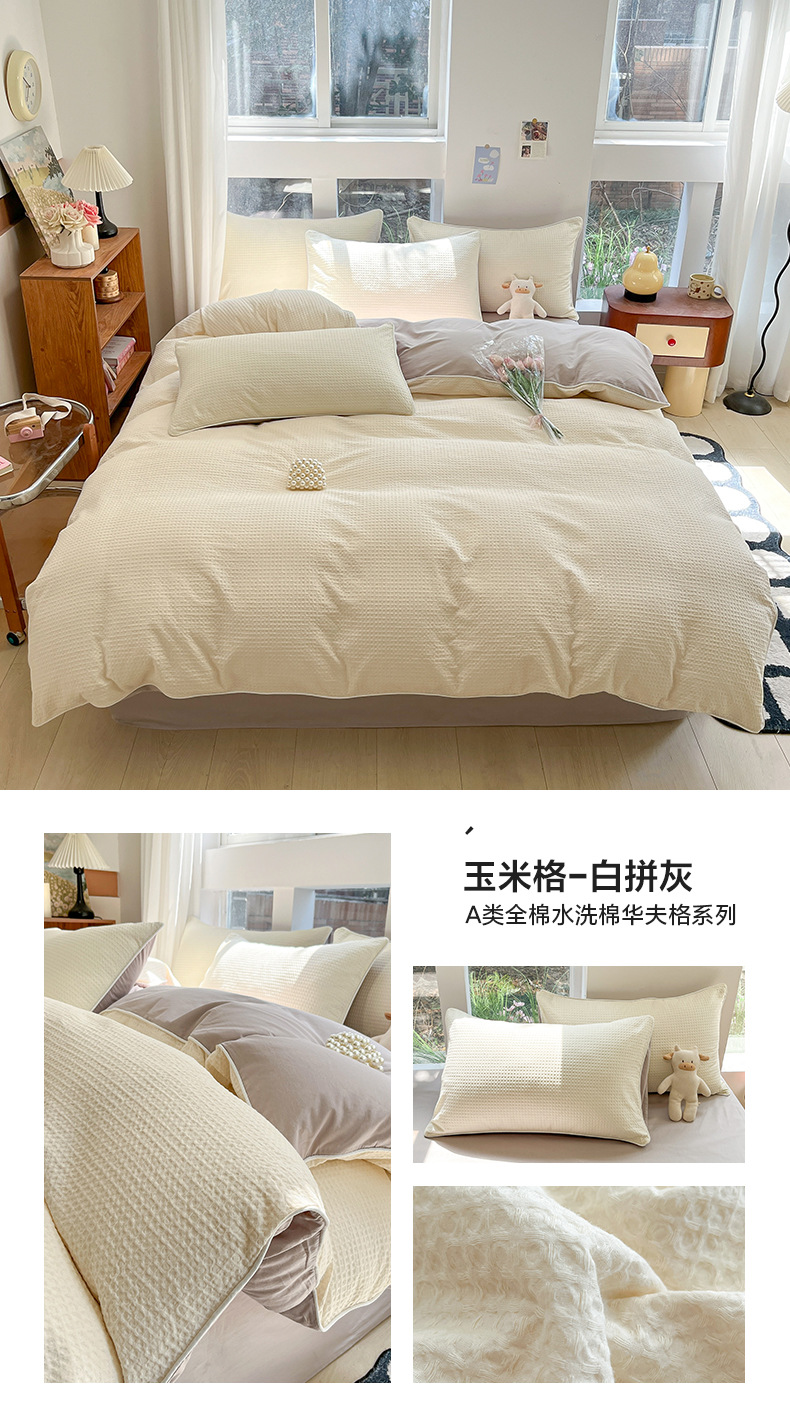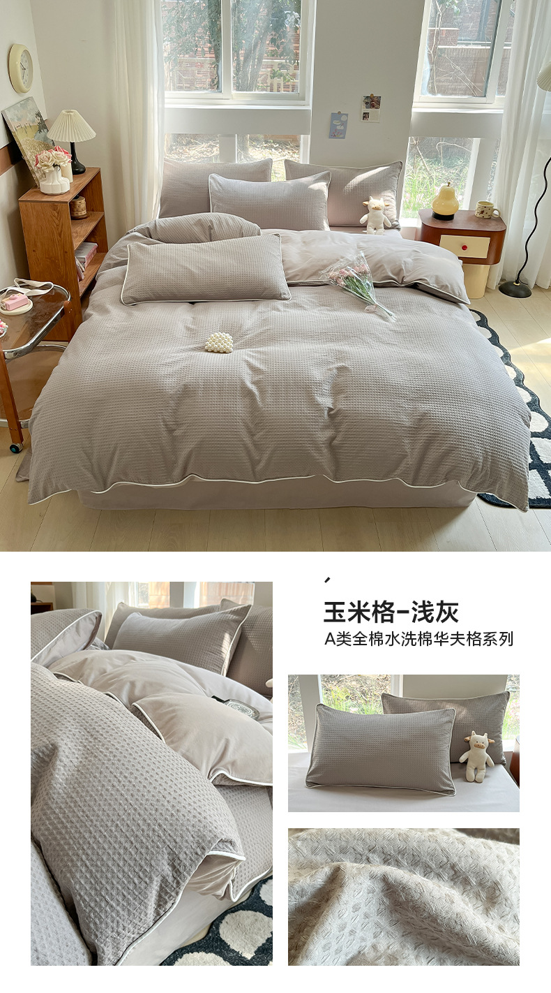 클래스 모성 및 유아 등급 와플 퓨어 코튼 4 피스 세트 인 스타일 간단한 퀼트 커버 피부 친화적 인 세척 코튼 3 피스 세트스토어 가기